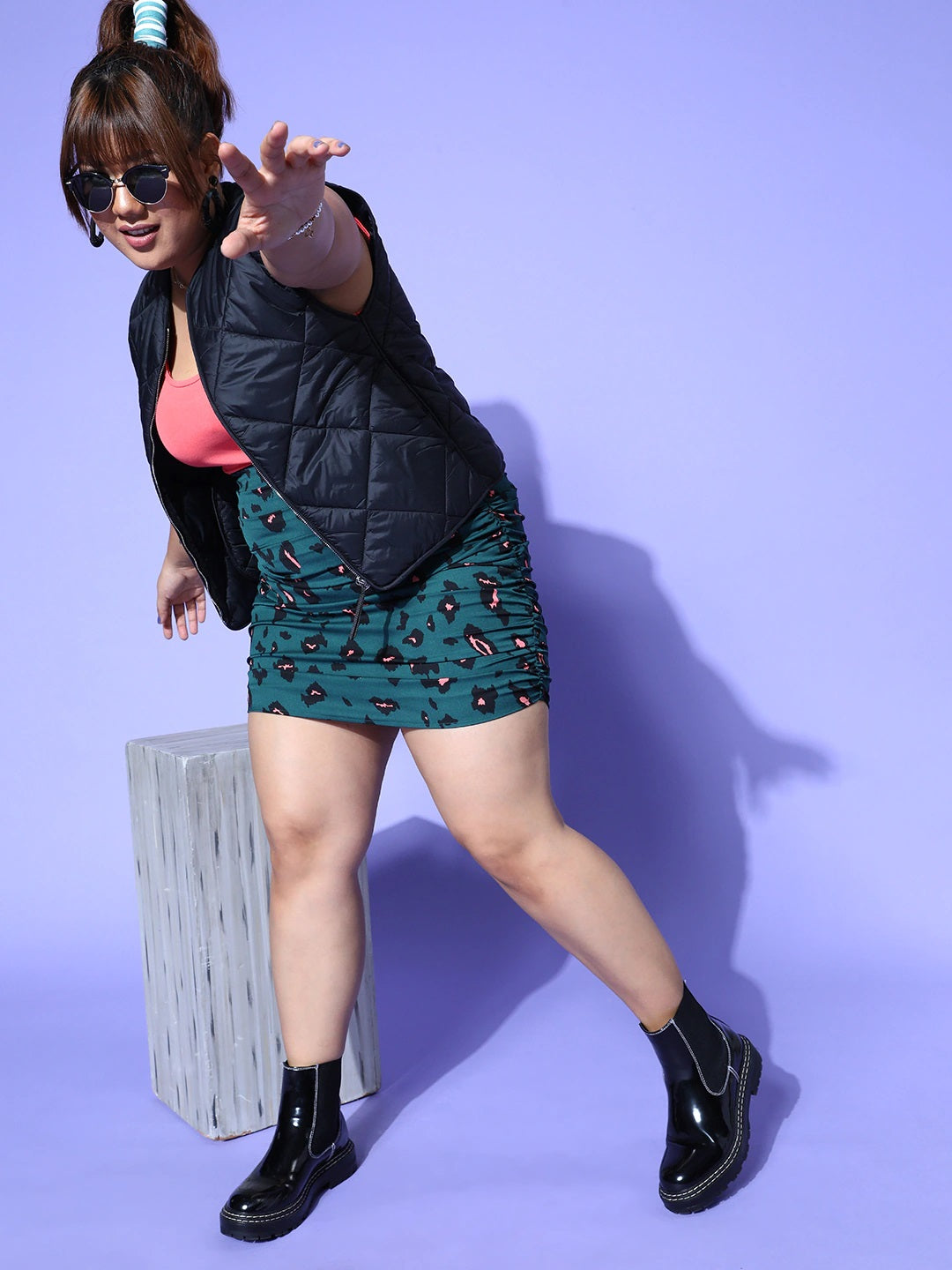 Berrylush Women Plus Size Green Animal Printed High-Rise Waist Straight Hem Pencil Mini Skirt