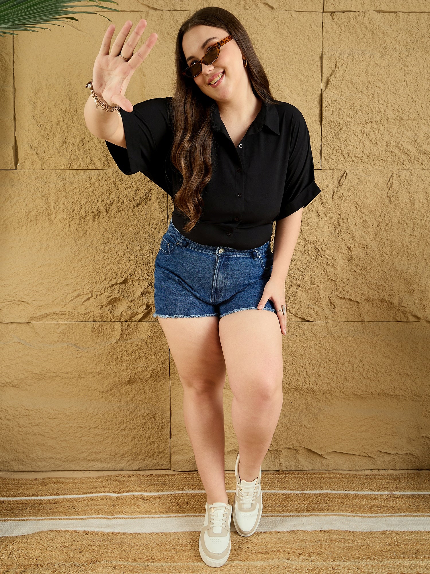 Step into the spotlight with Berrylush Curve's Solid Black Spread Collar Shirt, your perfect party companion. This chic piece showcases a sleek spread collar and short sleeves that combine style with comfort. Made from high-quality polyester, its smooth woven fabric ensures you stay at the peak of elegance throughout any event. The shirt features a button-up front closure for easy wear while maintaining an immaculate look with its solid black colour and opaque finish. Its curved hemline adds a contemporary touch to its regular fit design, making it an ideal choice for those who cherish sophistication in simplicity. Elevate your evening attire effortlessly!