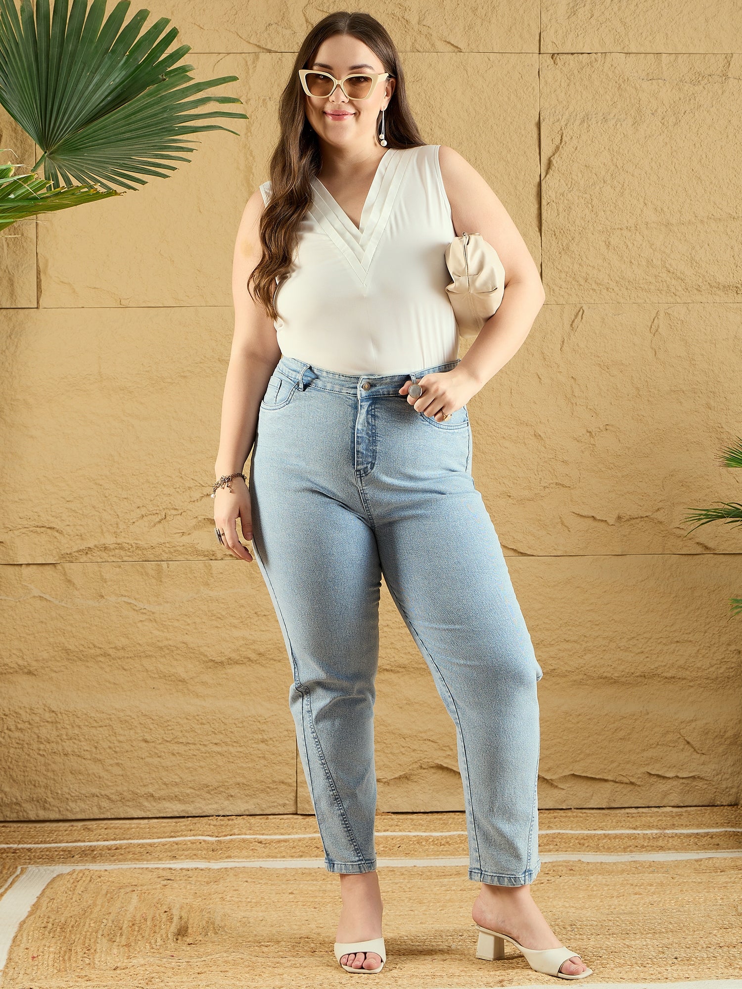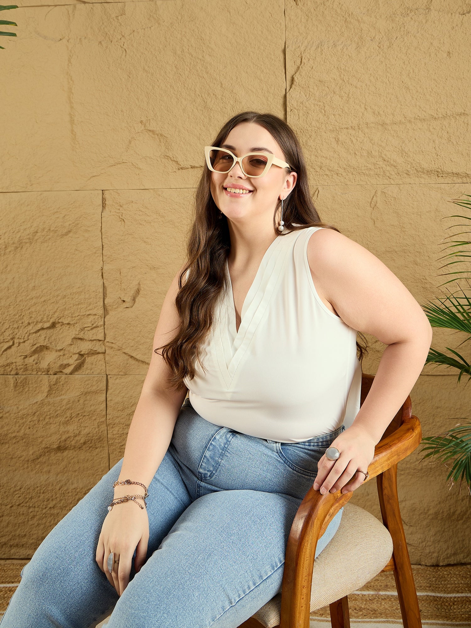 Elevate your formal wardrobe with the Berrylush Curve Solid White V-Neck Sleeveless Polyester Layered Regular Top. Crafted from premium polyester, this top features a sophisticated woven design that offers both comfort and durability. The elegant layered surface styling adds a touch of unique charm, while the classic solid white colour maintains a sharp, professional look. Perfectly suited for any formal occasion, its sleeveless cut and flattering V-neck provide a modern silhouette that enhances your style gracefully. Enjoy timeless fashion with this must-have piece from Berrylush Curve!