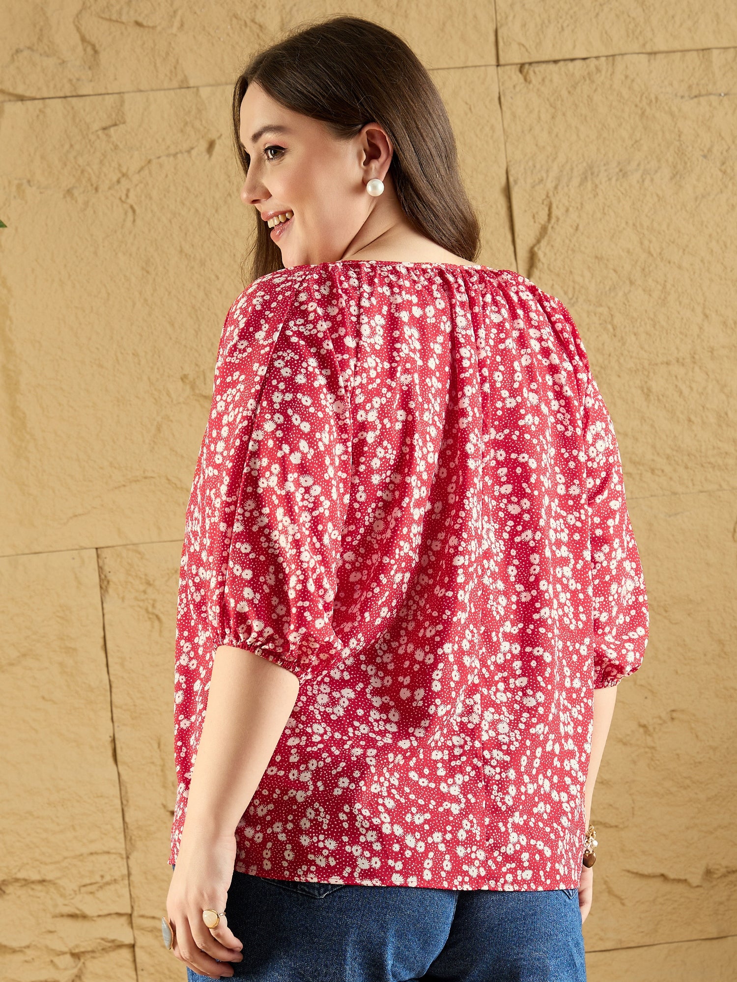 Embrace your day with the charm of Berrylush Curve's Red & White Floral Printed V-Neck Top. Designed for style and comfort, this piece features an enchanting floral print that blooms across a vibrant red backdrop. The flattering V-neckline and chic puff sleeves add a touch of femininity to your casual look. Crafted from premium polyester fabric with a woven texture, it ensures breathability and ease throughout the day. Its regular fit is complemented by convenient front buttons, making it easy to wear while maintaining an elegant silhouette. Ideal for any casual occasion where style is key!