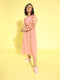 - Ruffled surface styling adds lustrous sheen to the midi dress