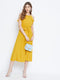 - Midi length with flared hemline lends a modish and vigorous style