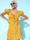 Berrylush Women Yellow & White Polka Dot Printed Sweetheart Neck Ruched A-Line Mini Dress