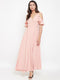 Recreate your capsule closet with an outfit that would keep your casual look trendy all year long just like this cinematic Blue & Maroon Floral Printed V-Neck Cold-Shoulder Waist Tie-Up Flared Maxi Dress from Berrylush. Crafted with crepe polyester fabric to keep this maxi dress super light with a soft touch and unrestricted breathability. The most fascinating element of this maxi dress is the short sleeves styled with a cold-shoulder design to give an enchanting appeal and proper ventilation to your arms. To provide an anti-slip and supportive fit to your body this maxi dress is also comprised of shoulder straps while the wrap style adds a trendy sheen. Pair this majestic maxi dress with strappy heels and a sling bag to add a sophisticated charm to your look.