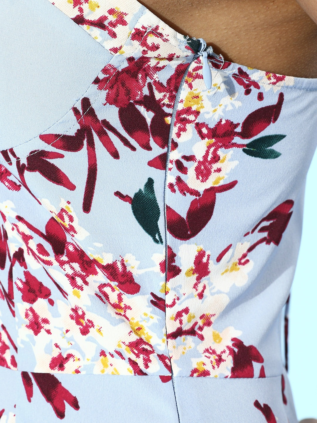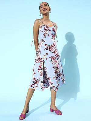 Let your cheerful vibe shine through your casual look with this sassy Blue & Maroon Floral Printed Sweetheart Neck Tie-Up Strap Fit & Flare Midi Dress from Berrylush. This dress lets you delicately represent your exotic side with the side slits which gives an alluring disclosure to your beautiful legs. Designed with a tie-up shoulder to provide a convenient silhouette by giving an eccentric appeal to your neckline and shoulders. Moreover, the fit and flare shape of this midi dress assembles a modish and lean look. You can complete your look by teaming up this chic midi dress with gladiators and a side bag.