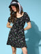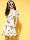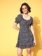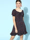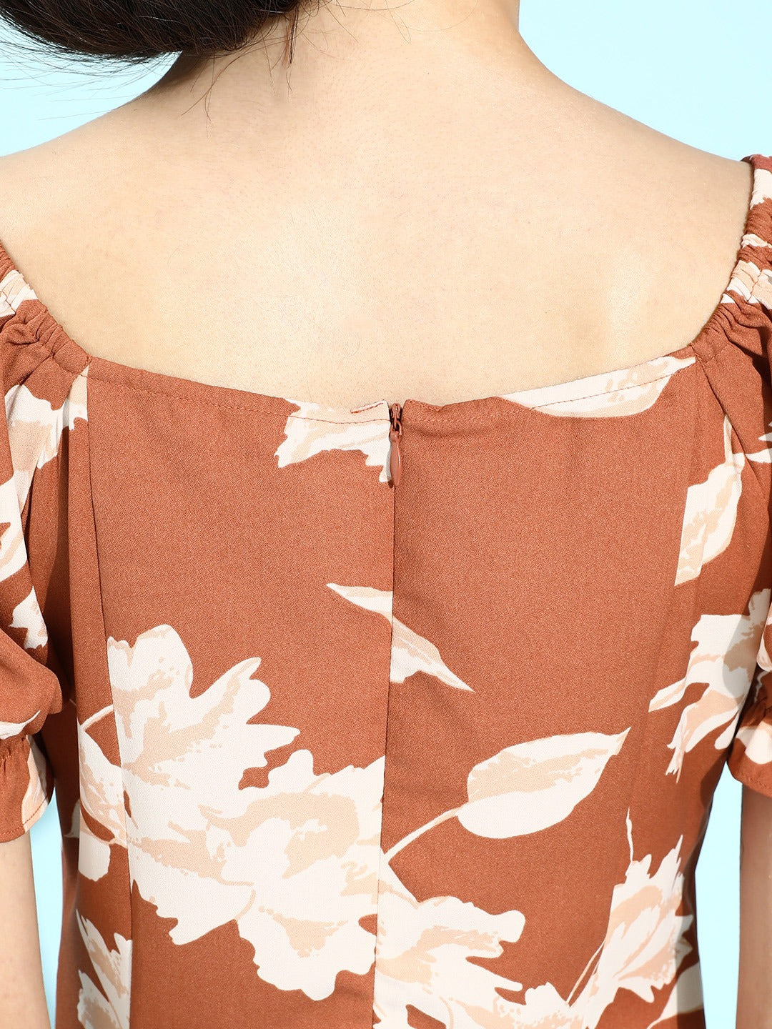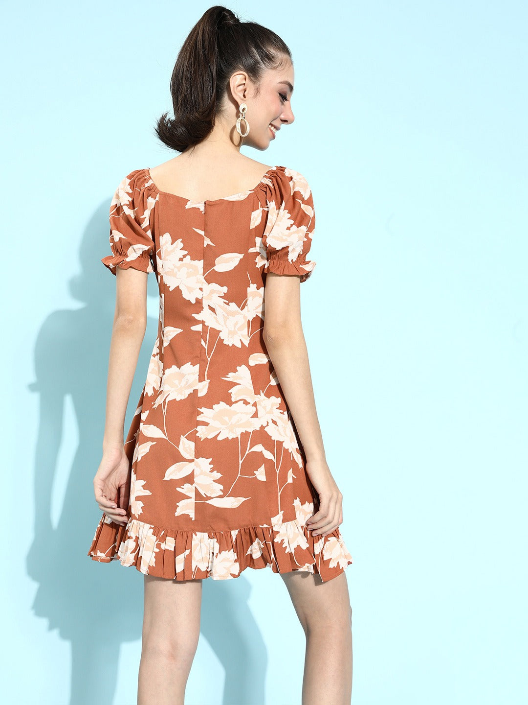 Berrylush Women Brown Floral Printed Sweetheart Neck Ruffled A-Line Mini Dress