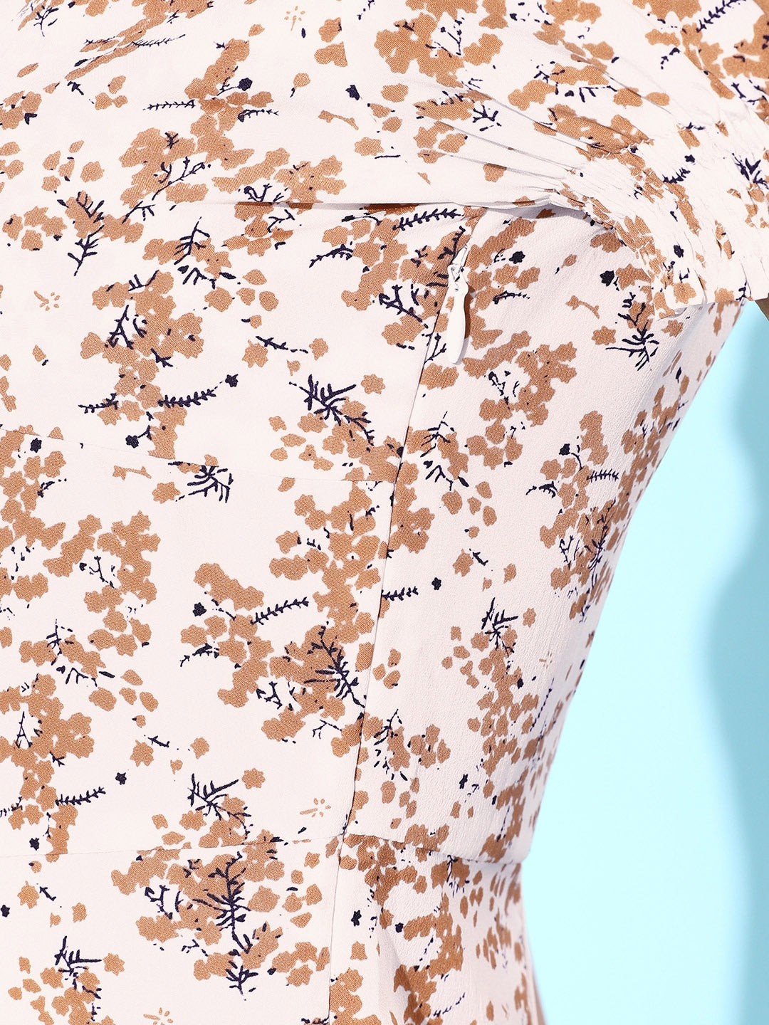 If you desire a simple yet stylish outfit, then this summer bring home this gorgeous White Floral Printed Sweetheart Neck Crepe Straight A-Line Midi Dress from Berrylush. Elegantly designed with a sweetheart neck to give a broad structure and enticing appeal to your collarbones. The zipper closure of this cami dress offers an anti-slip and supportive element to your body. Allover floral print and short puffed sleeves add a charming flair to this dress. Thigh-high slit detailing adds flattering texture and decorative sheen to this cami dress. Team up this mesmerizing A-line midi dress with your favourite pair of flats and a side bag to create a fashionable look.