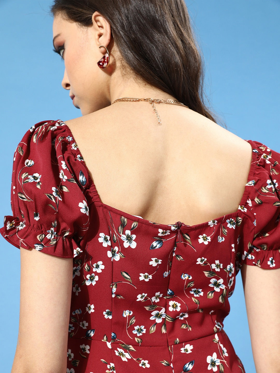 Berrylush Women Red Floral Printed Crepe Bodycon Mini Dress