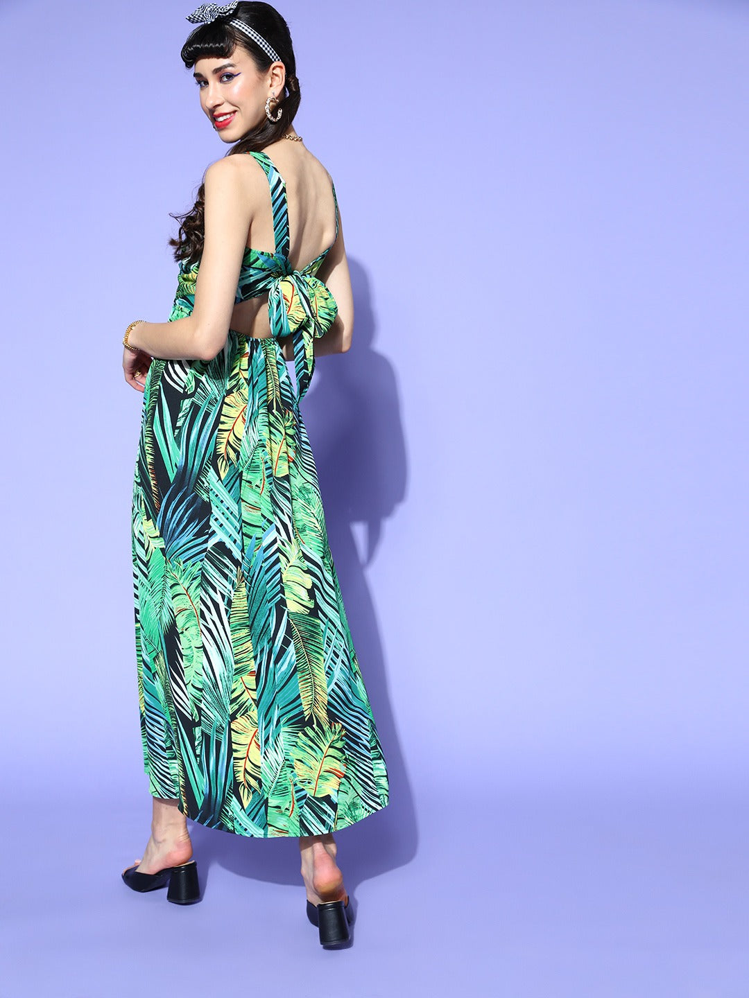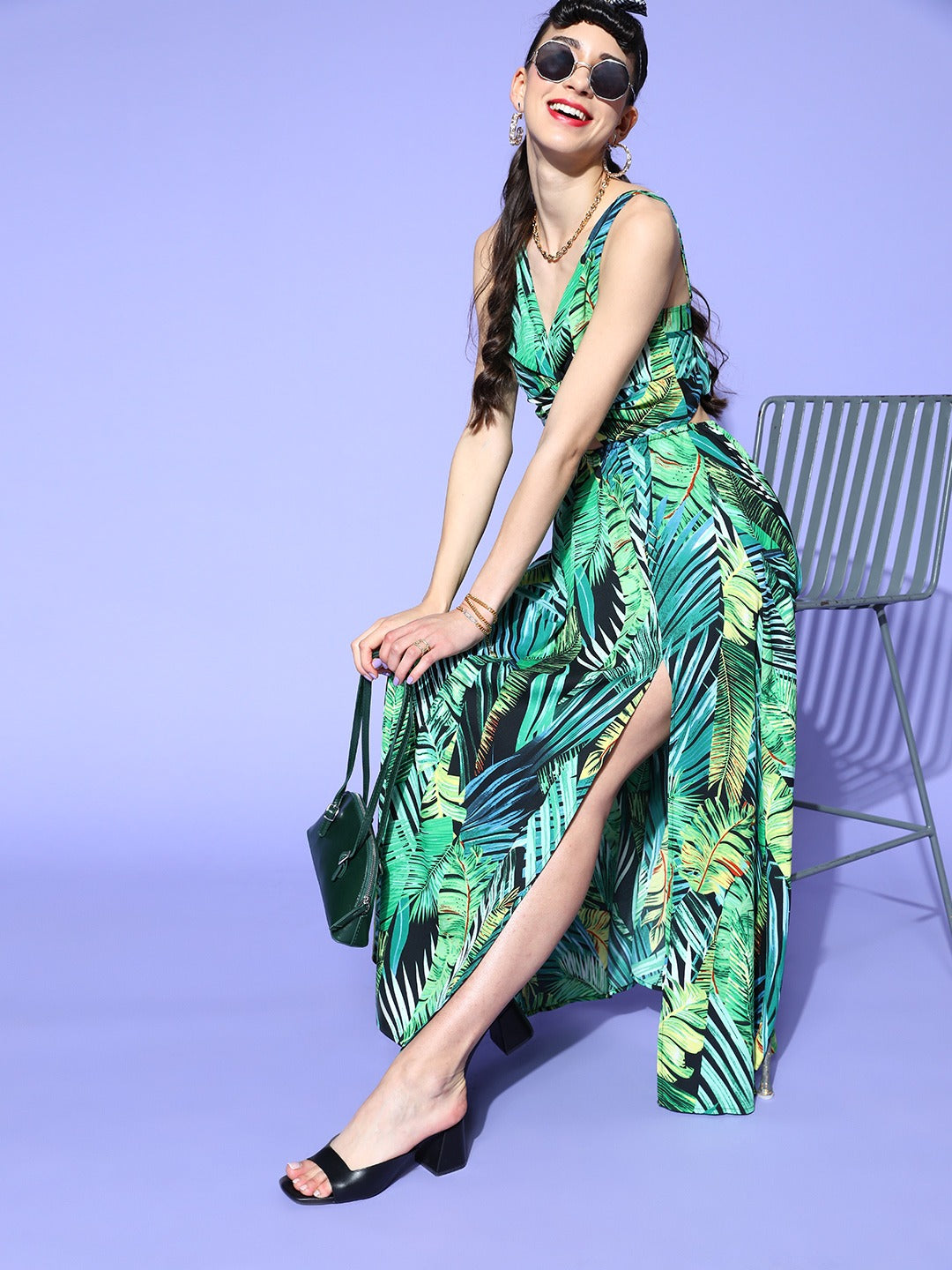 Dress in the coolest way this summer with the charm of vibrant colours just like this gorgeous Green & Yellow Floral Printed V-Neck Open Back Thigh-High Slited A-Line Maxi Dress designed by Berrylush. This dress would enable you to steal the limelight of any casual events as its present A-line profile outshine your attractive figure with a contouring yet comfy fit. Styled with a sleeveless design that keeps your arms cool during hot days and also lends you an option of layering if the weather gets windy. Also, this dress is made from crepe polyester fabric to offer a lightweight feature with excellent moisture-wicking ability. Team up this maxi dress with a pair of cute sandals, a fashionable headband, and a tropical print handbag to complete your fashionable look.