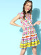 Berrylush Women White & Pink Floral Printed V-Neck Cap Sleeve A-Line Wrap Mini Dress