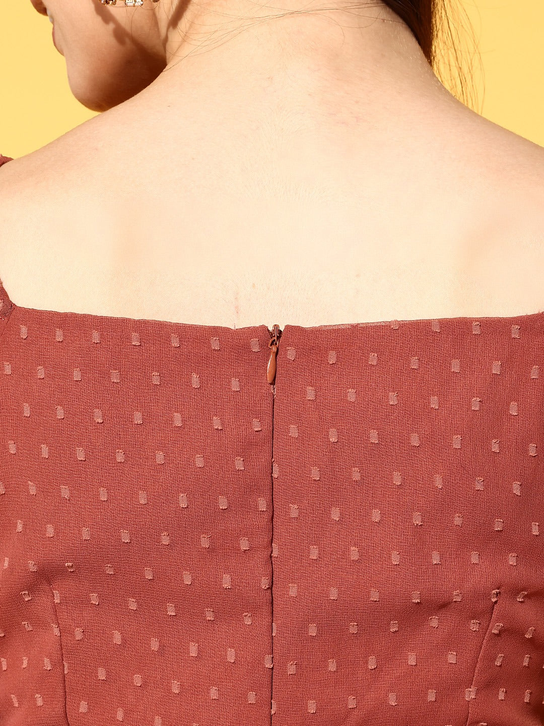 - Brown shade with dobby weave lends this dress a cinematic look with the ritzy vibe