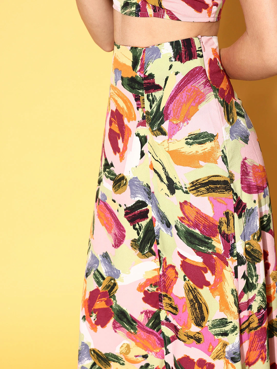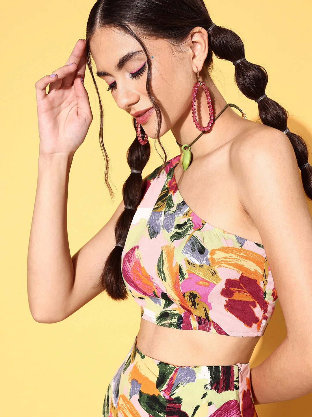 Conquer the fashion world with your unique yet chic style preference by opting for this pretty Pink Abstract Printed Crop Top with Maxi Skirt from Berrylush. Highlighting a one-shoulder neck design that gives your neckline an asymmetric and edgy definition with uninterrupted comfort. The flared hemline injects flattering flair and volume into this skirt. Moreover, the maxi length of the skirt keeps your legs protected from suntan with attractive and proper coverage. Create a fashion-focused look for upcoming casual events by wearing this co-ord set with a pair of yellow high-heels, contrasting hoop earrings, and a matching handbag.