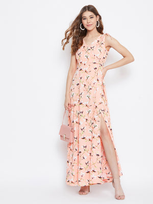 Berrylush Women Pink Floral Printed Tie-Knot A-Line Maxi Dress