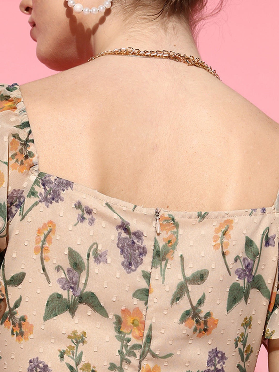 Let your casual closet dive into new hues that resemble the colours of the summer season by adding to your shopping cart this beautiful Beige and Multicoloured Floral Print Sweetheart Neck Fit and Flare Mini Dress from Berrylush. Adorned with a sweetheart neck design that gives your neckline an intimate and romantic appeal with a half-heart shape. Spun from the finest georgette fabric that lends this dress uninterrupted breathability and elegant appearance. The concealed zip closure makes this dress easy to style with a secure fastening process and sleek sheen. Pair up this mini dress with your favourite heels, matching earrings, and a sassy side bag to get a fashion-forward look.
