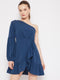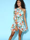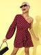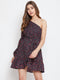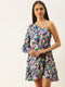 Berrylush Women Black & White Floral Printed One-Shoulder Tulip Hem Fit & Flare Mini Dress