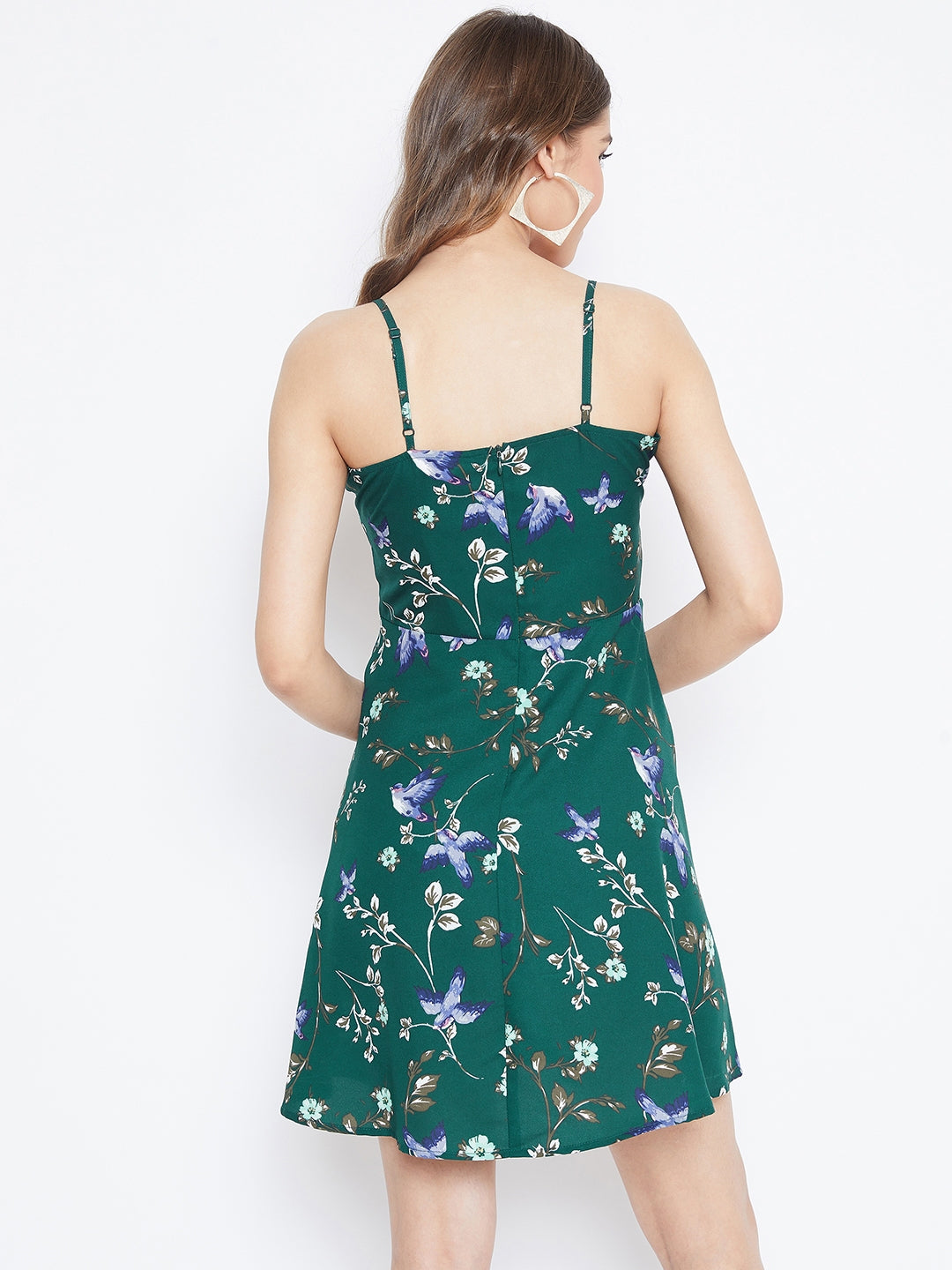 Berrylush Women Green Floral Shoulder-Strap Fit & Flare Mini Dress