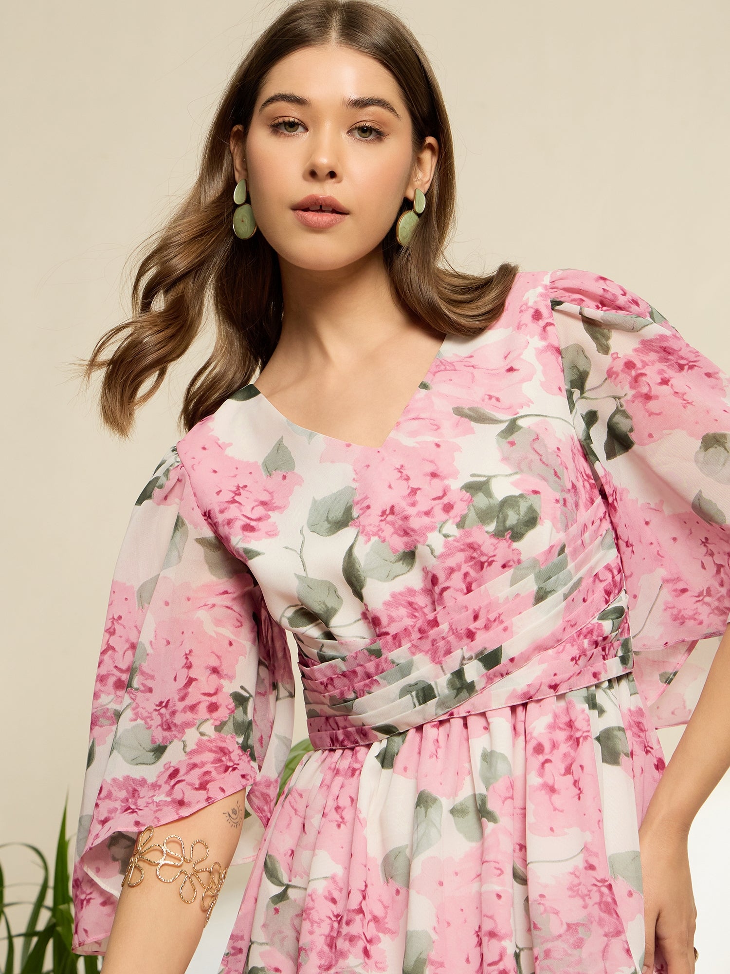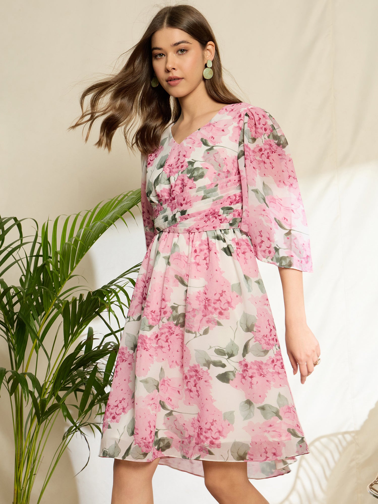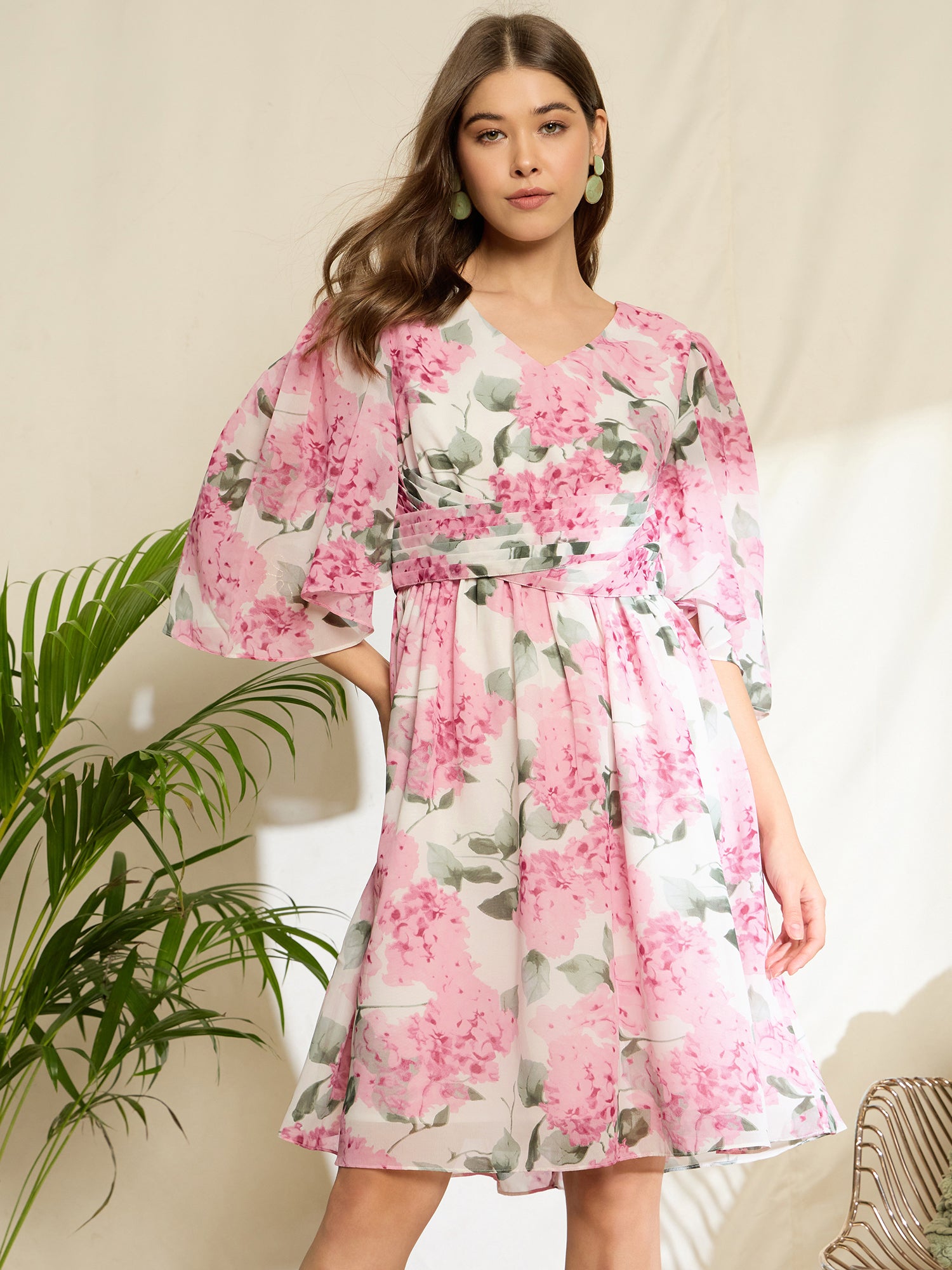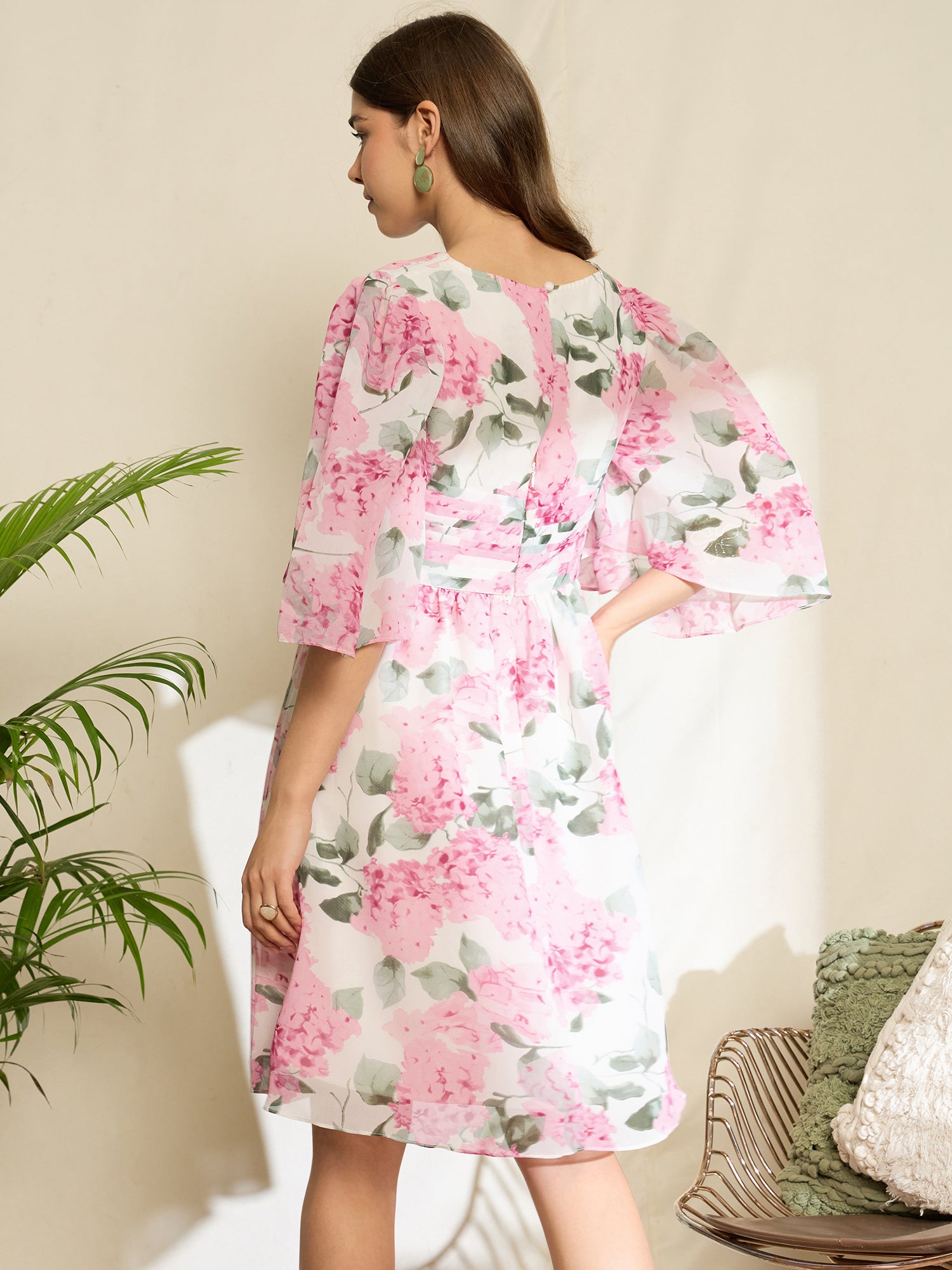 Step into effortless elegance with the White & Pink Floral Printed V-Neck Puff Sleeves Georgette Pleated Fit & Flare Mini Dress by Berrylush. Designed for those who appreciate playful sophistication, this charming mini dress showcases a delightful blend of floral patterns against a fresh white backdrop, adding a pop of colour with soft pink hues. The flattering fit and flare silhouette is complemented by pleated detailing that enhances movement, while short puff sleeves lend an enchanting touch to your ensemble. Crafted from high-quality polyester in lightweight georgette fabric, it ensures comfort all day long - perfect for casual outings or brunches with friends. The chic V-neckline adds an alluring flair and the concealed zipper provides easy wear without compromising style. With its opaque finish and flared hemline, you'll effortlessly captivate attention wherever you go in this stunning piece that embodies both fashion and fun!