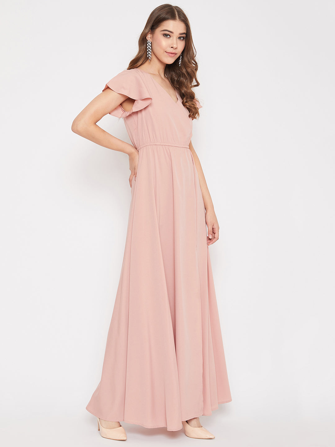 Try out the spring season's most sensational Solid Pink V-Neck Thigh-High Slit Flared Maxi Dress from Berrylush. The long maxi length of the dress going to bring the ultimate grace to your persona. The all-time favourite pink tint of this maxi dress will steal the attention of your admirers for sure. With the short flared sleeves, your arms look very youthful and stay ventilated. The V-shaped neckline adds up more grace to your neck area. With the front high rise slit, your legs appear sensual and attractive. Match this maxi dress with high heeled pumps and a metallic long suspended sling bag that will complete the look. Design your party looks with exclusive outfits from Berrylush.