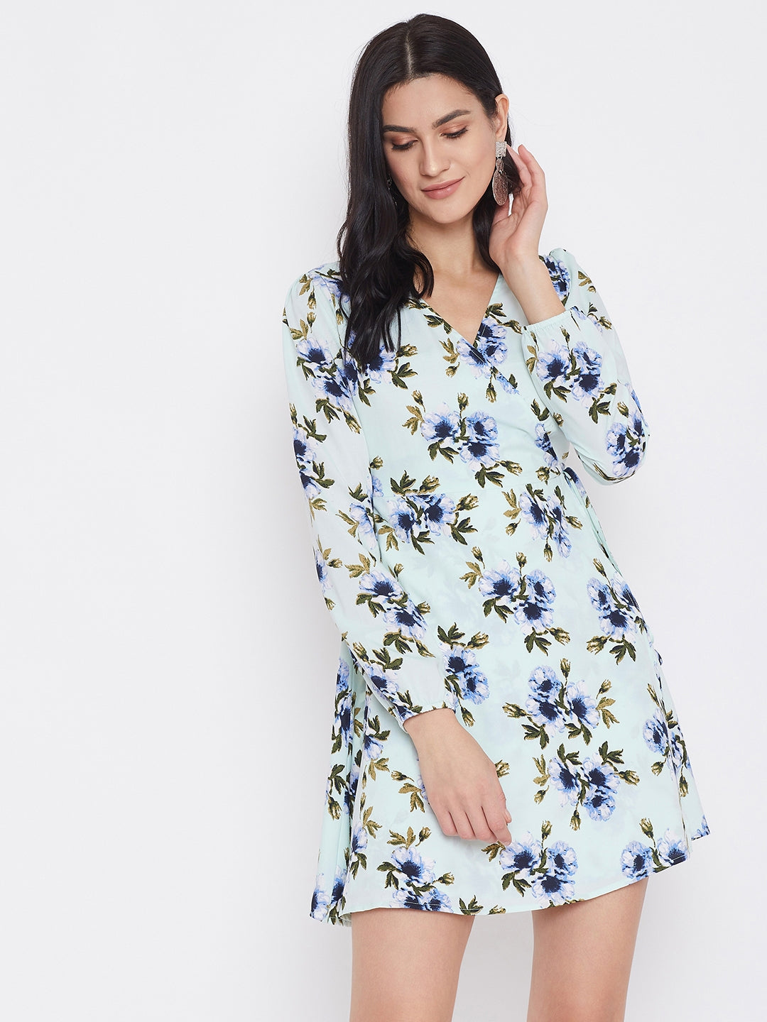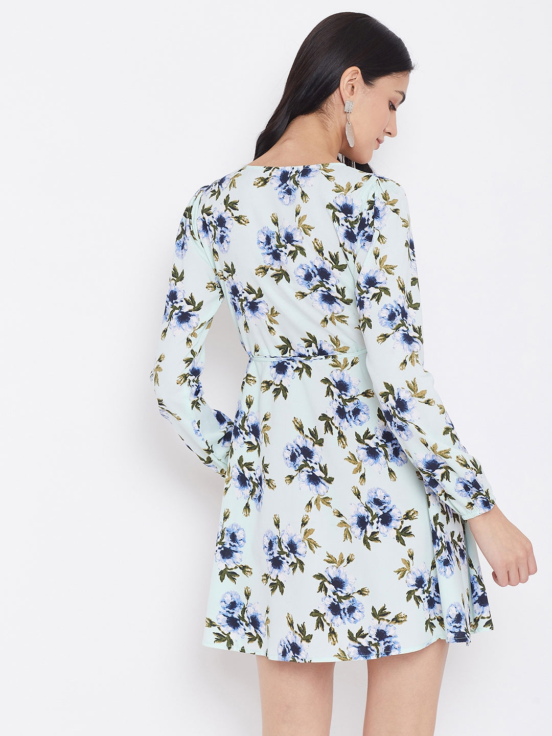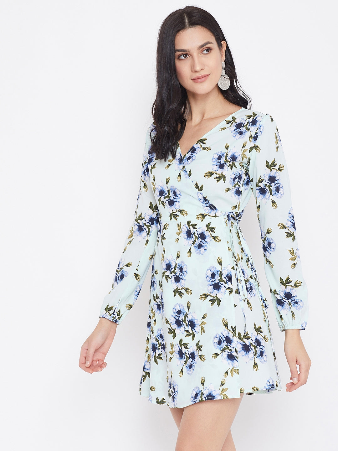 When the fall season asks for an outfit that speaks of the vibrant story of the spring, then this attractive Green Floral Printed A-Line Wrap Dress from Berrylush is a must to buy. Along with an intriguing floral motif, the green tint creates an animated illusion. Charming long sleeves are ready to make your arms look longer and with the smart wrap & tie pattern, your torso gets a trimmed outline. The A-line cut of the outfit perfectly balances your body proportion and because of the mini flare hem, your height attains a natural hype. Style this spring flavoured A-line wrap dress with chic calf-length tall boots and bring the ultimate vogue out of the fall season by styling only with Berrylush.
