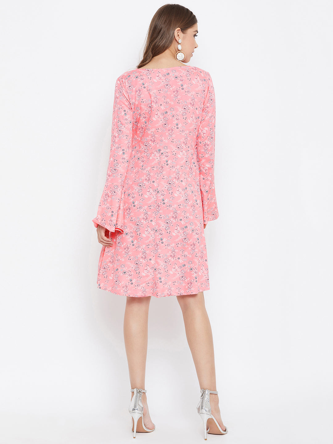 With the fall season, the casual styling shouldn't get dull and become more exciting with this Pink Floral Printed V-Neck Tulip Hem Wrap Fit & Flare Mini Dress from Berrylush. The eye-soothing pink colour with the contrasting floral print beautifully fills a fun punch to this casual wear. With the attractive bell sleeves, this dress looks charming and becomes more tempting with the V-shaped neckline. The wrap detailing and tie closure of this dress hug your body and give a fit & flare silhouette for a perfect smart presence. The tulip hemline gives a youthful spark to your autumn look. By matching this dress from Berrylush with calf-length boots your appearance gets a super chic flavour. Buy the floral journey with this Pink dress from Berrylush.