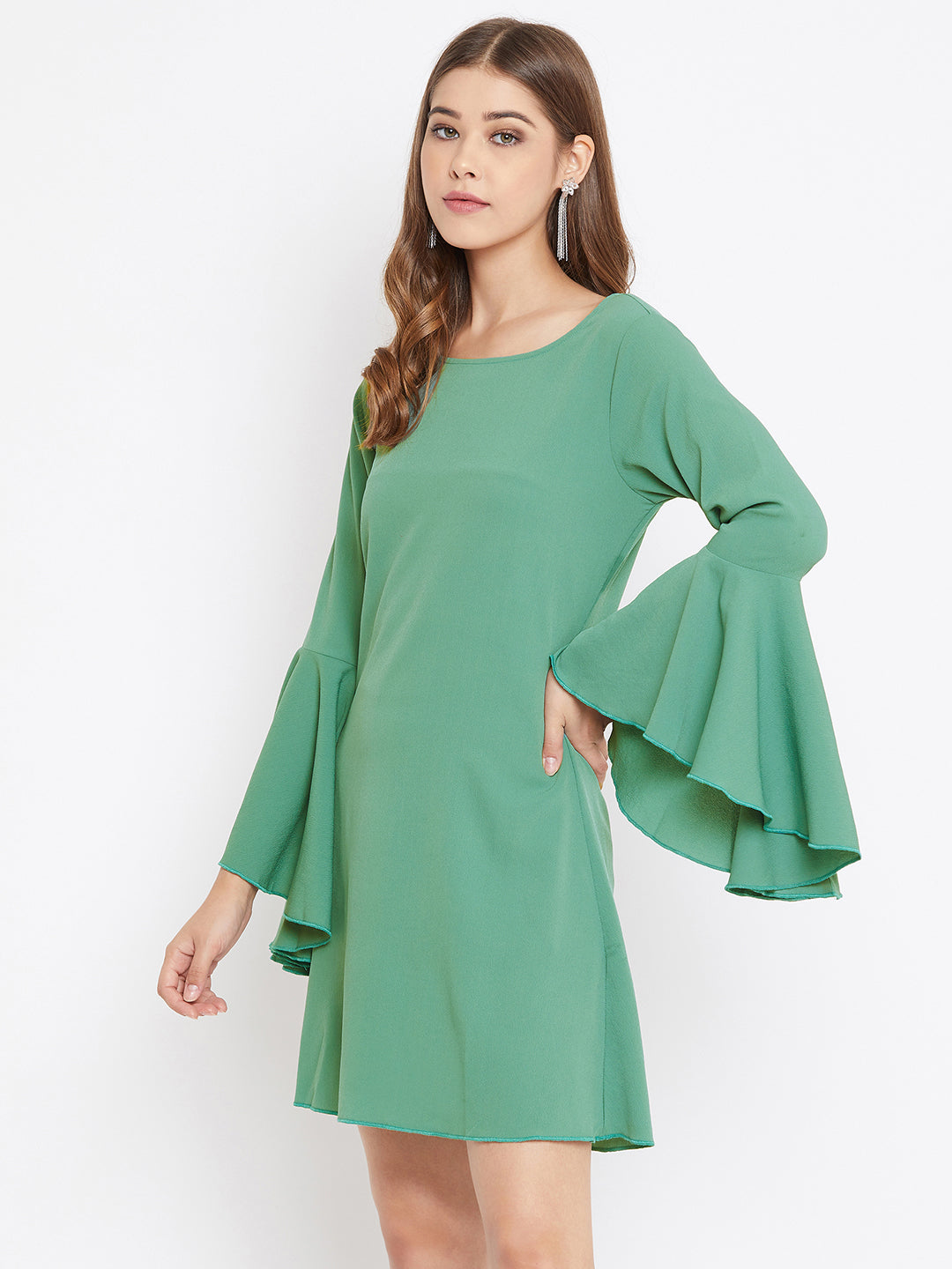 Berrylush Women Solid Mint Green Flutter Sleeves A-Line Mini Dress
