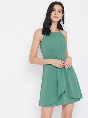 Berrylush Women Solid Teal Green Halter Neck A-Line Mini Dress