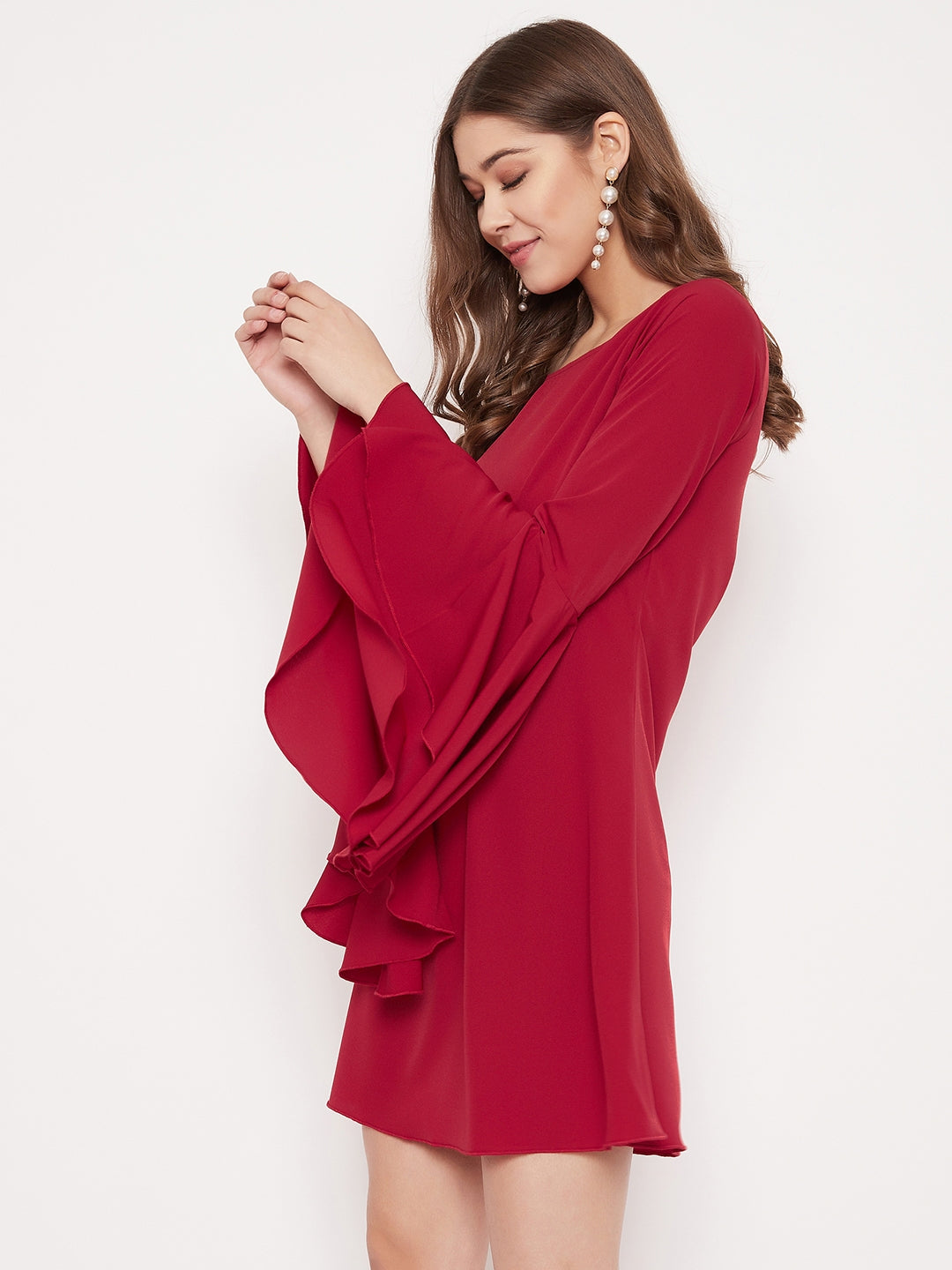 Berrylush Women Solid Red Flared Sleeves A-Line Mini Dress