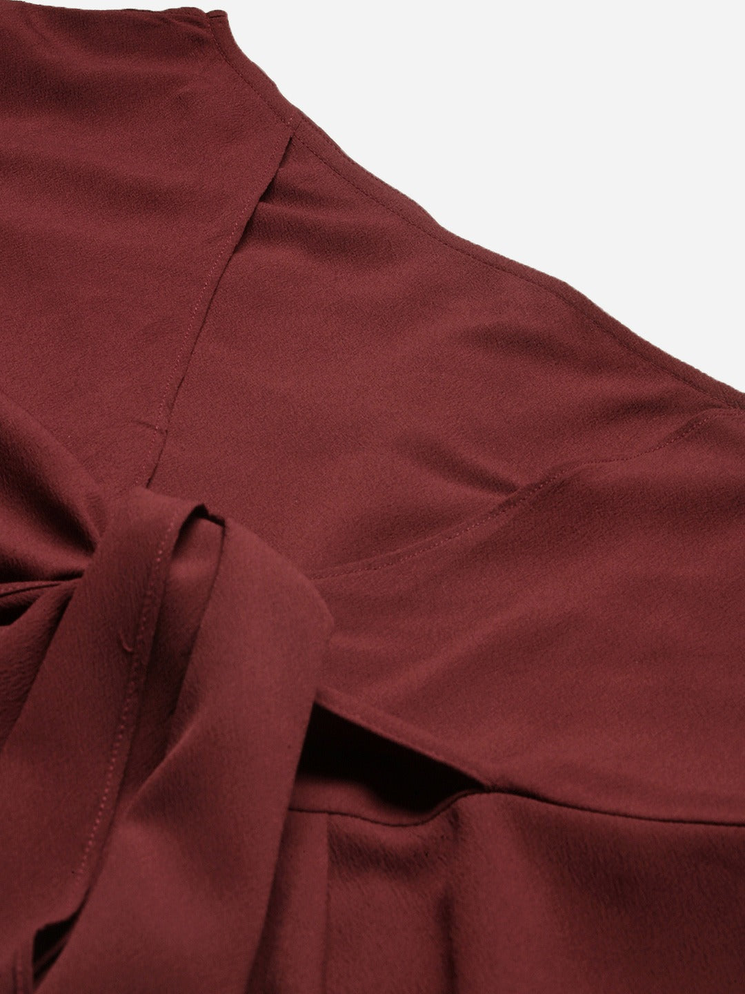 • Solid maroon color makes it an elegant choice for parties or night outs