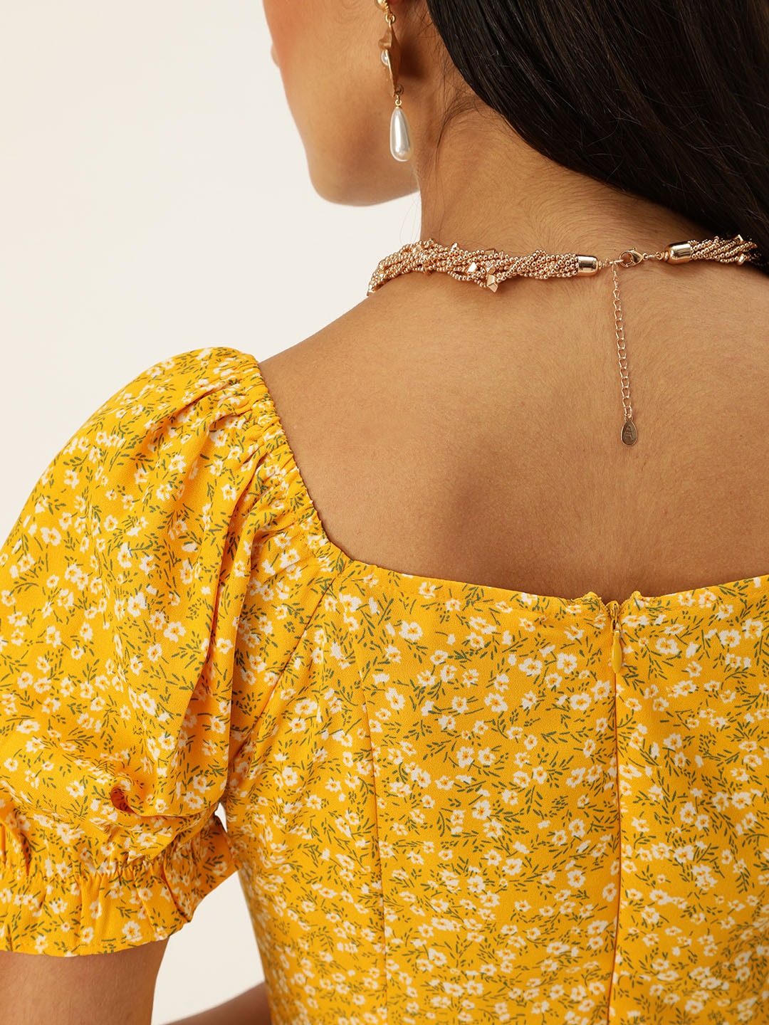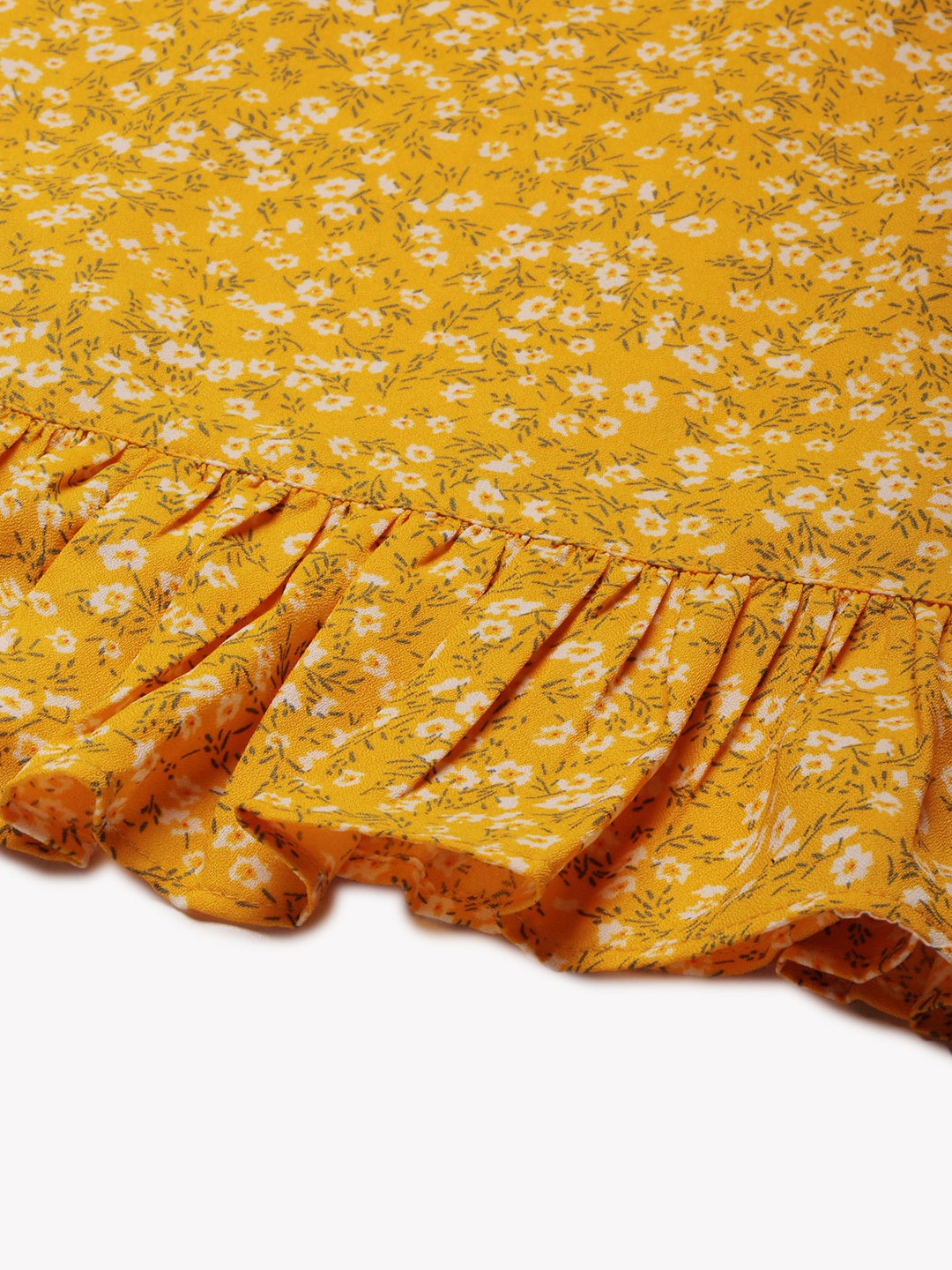 This Berrylush Yellow Floral Print A-Line Midi Dress has been crafted for all those fashionistas who want to set new examples for the fashion world. A charming ruffled hemline with a wide sweetheart-shaped neck sets a weightage to the torso. And the femineity further becomes deeper as we go down to the dress's hemline. Yellow color always sets our mood into a gleaming note, and this time the color has been crafted with a petite floral print that brings exclusive beauty to this outfit. With a sleek knot fastened loosely the dress has an outstanding European taste. And the puffed sleeves somehow bring back the girly essence from our childhood days. Buy a super summer wear staple from Berrylush and march ahead with a sunflower-like radiance.