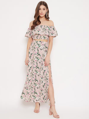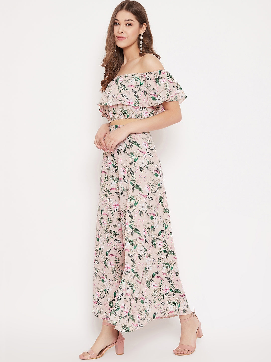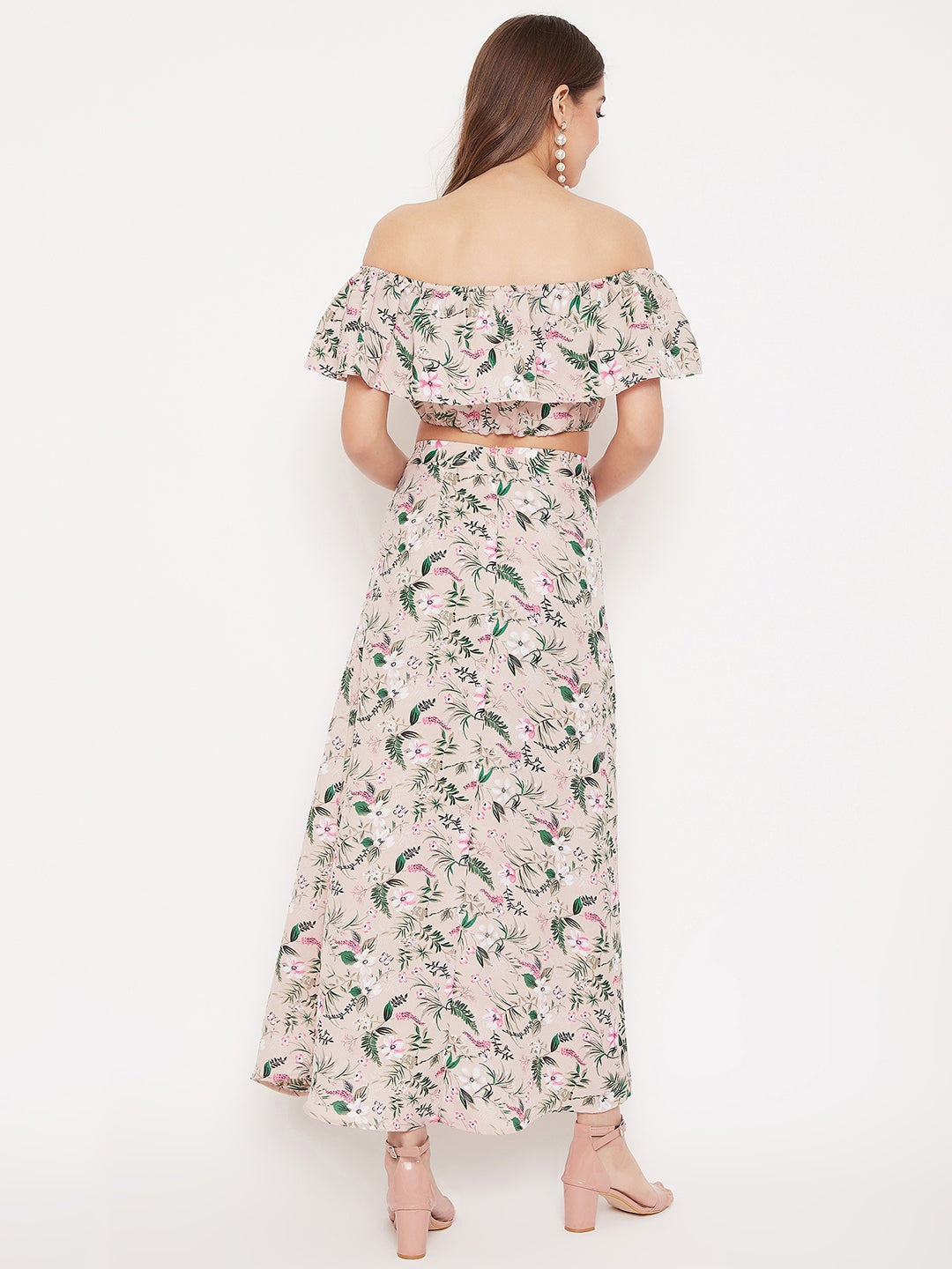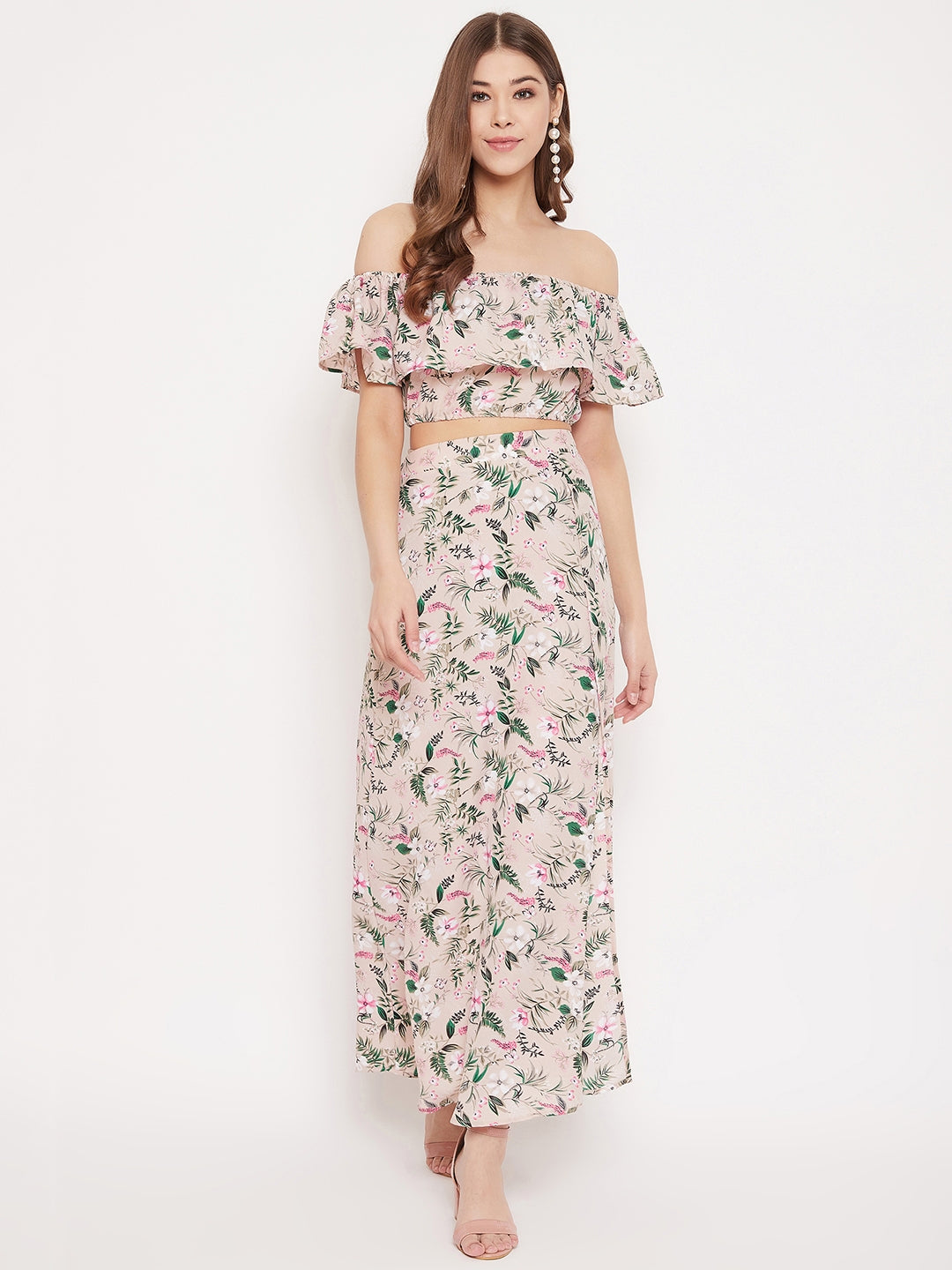 Berrylush Beige Floral Print Co-Ord Dress Set