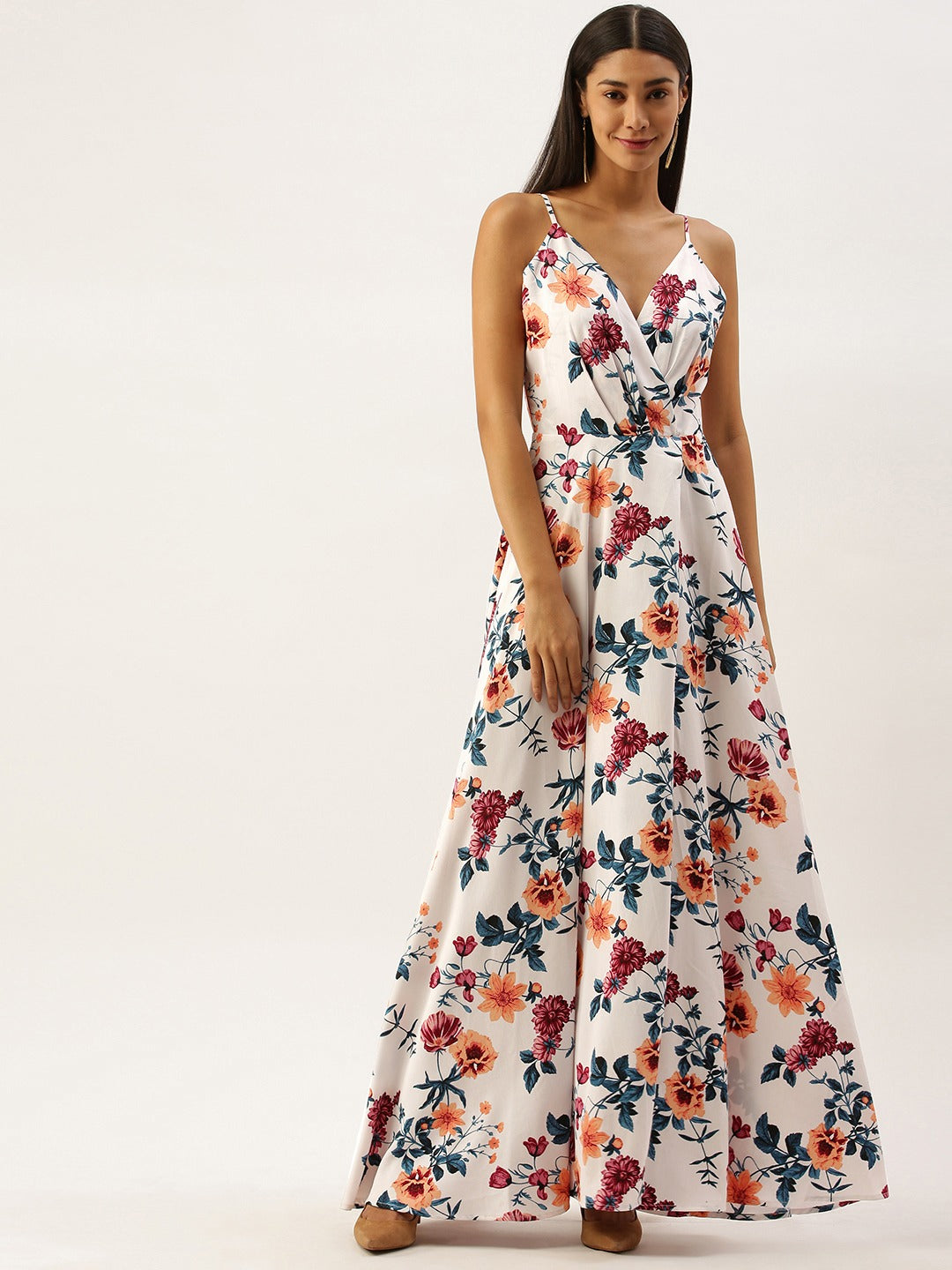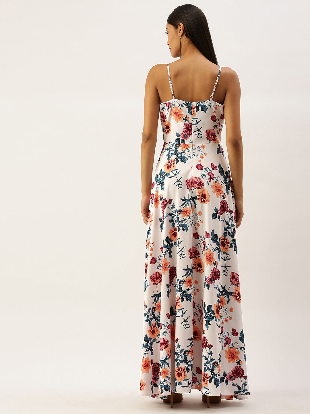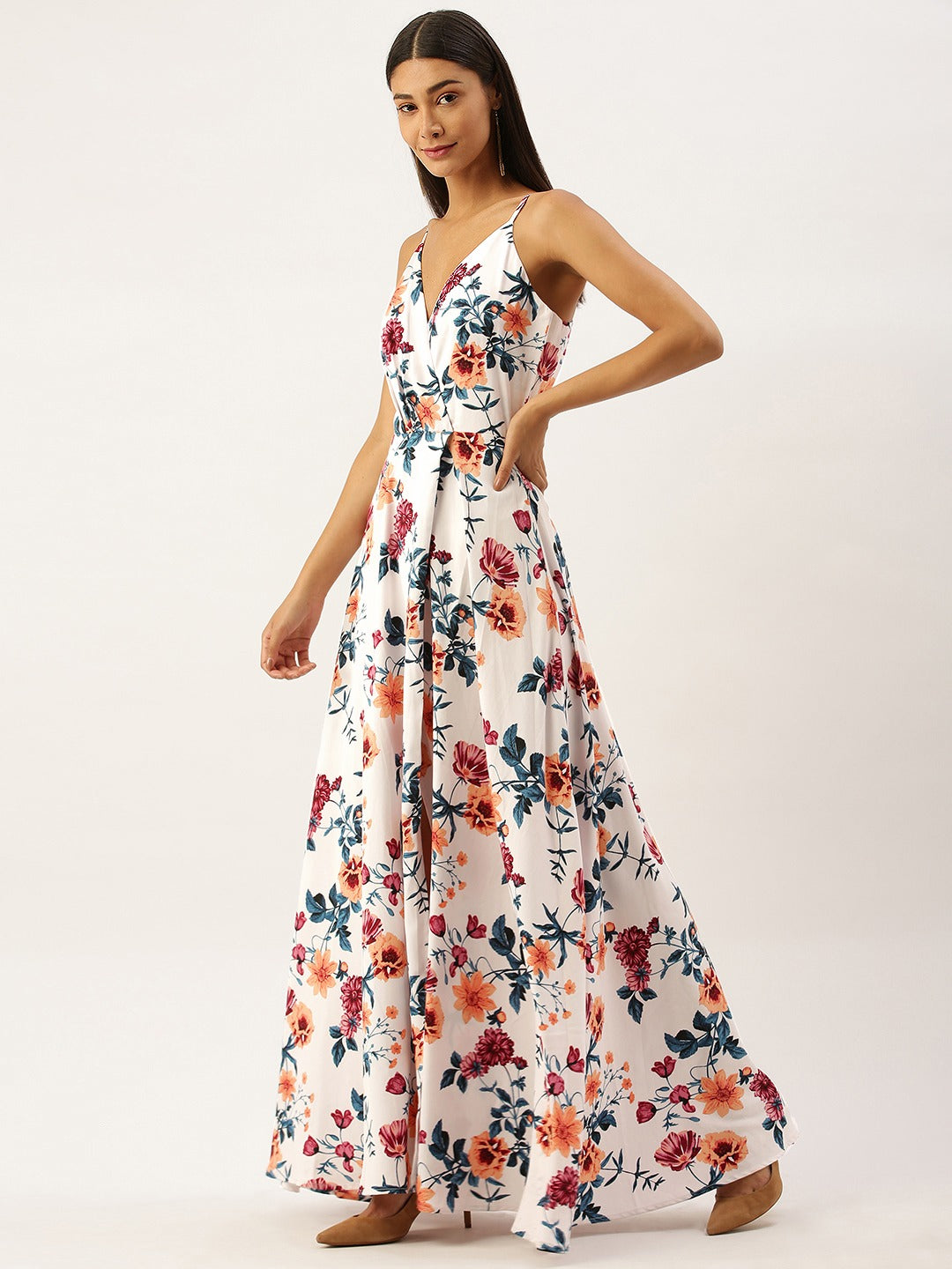 Berrylush Women White Floral Printed V-Neck Maxi Dress