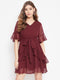 Make your casual outings stylish with this Berrylush Mustard Yellow Ruffled Front Knot Layered Mini Dress. Sassy ruffles run from the front to the back of this dress over the flared hem to create a lively appeal. The front is designed with a V-neckline and knot detailing that gives a trendy flair to this layered dress. This A-line mini dress is stitched with georgette fabric with an all-over dotted pattern and short flared sleeves to make for a modish outfit for casual gatherings or weekend trips. The concealed zip lets you get dressed in this outfit easily. Style this mustard yellow mini dress with your favorite footwear and slingback for a flattering and trendy look.