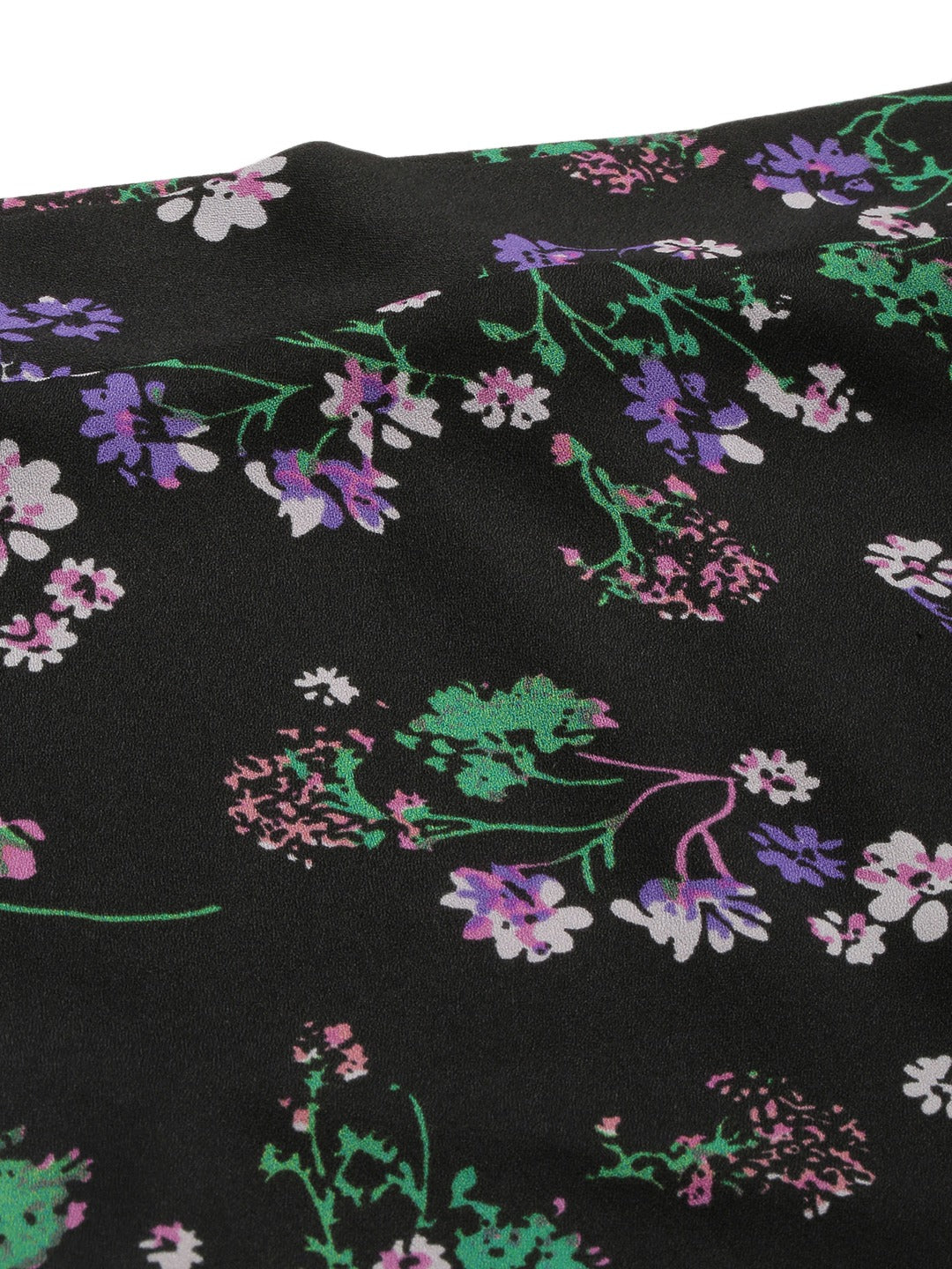 Berrylush Women Black Floral Printed V-Neck Fit & Flare Co-Ordinate Mini Dress