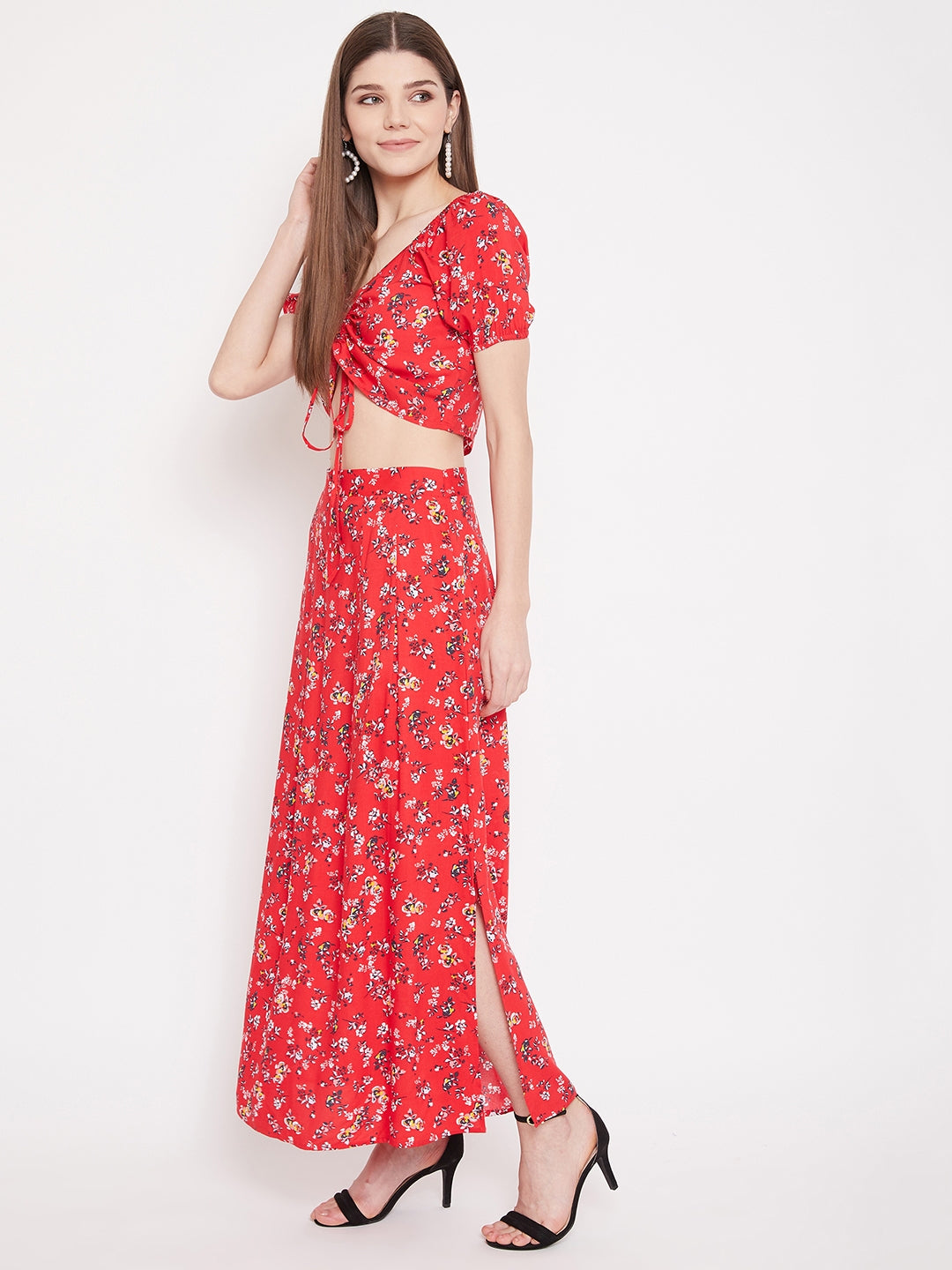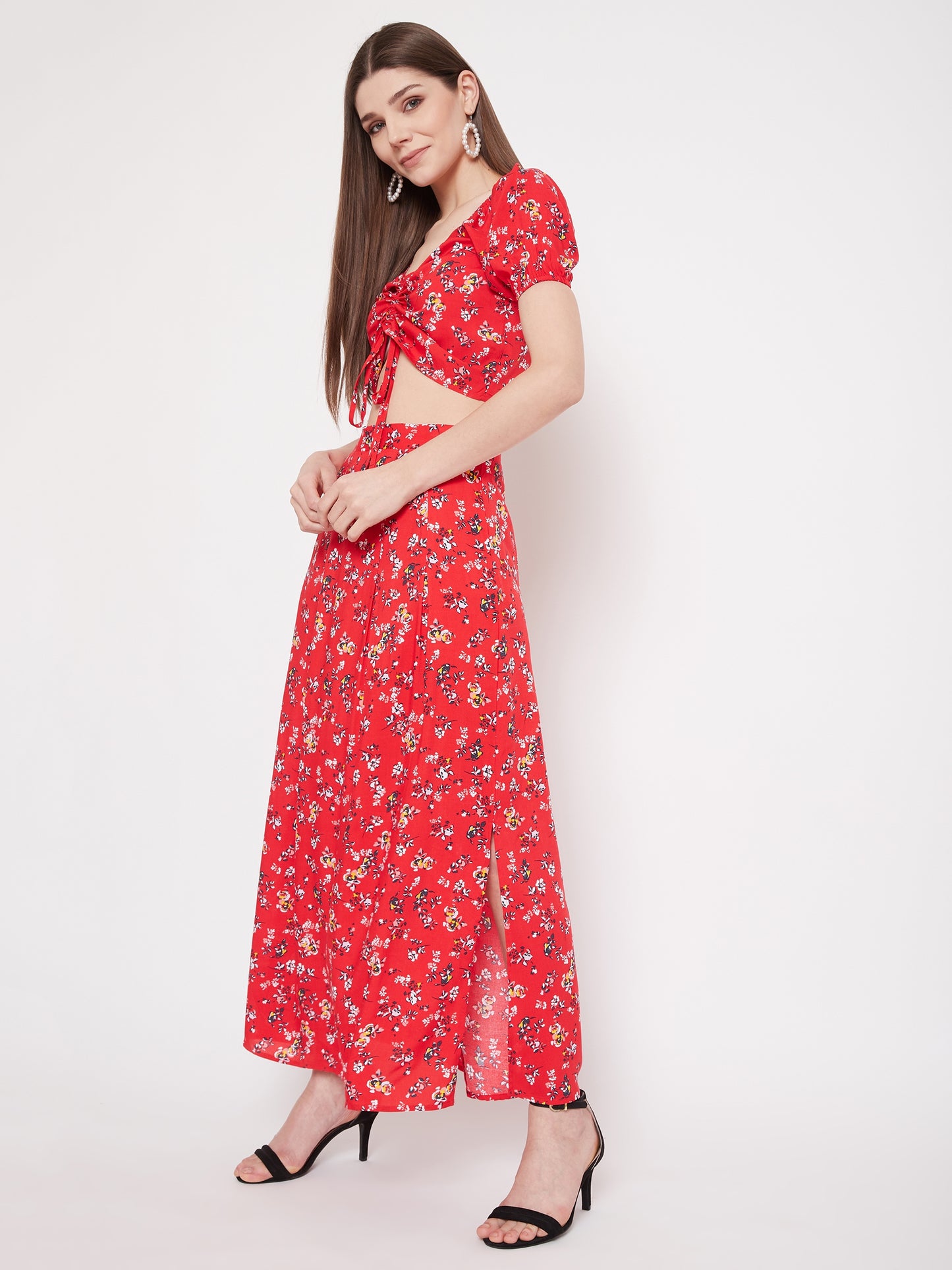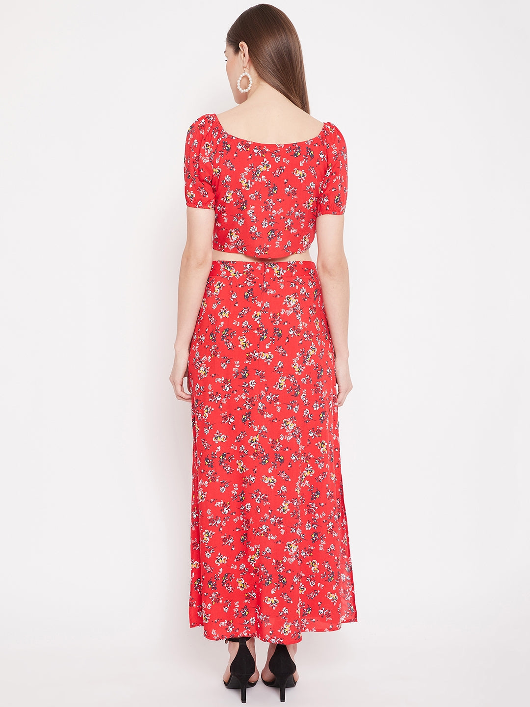 Berrylush Women Red Floral Printed Two-Piece Maxi Dress