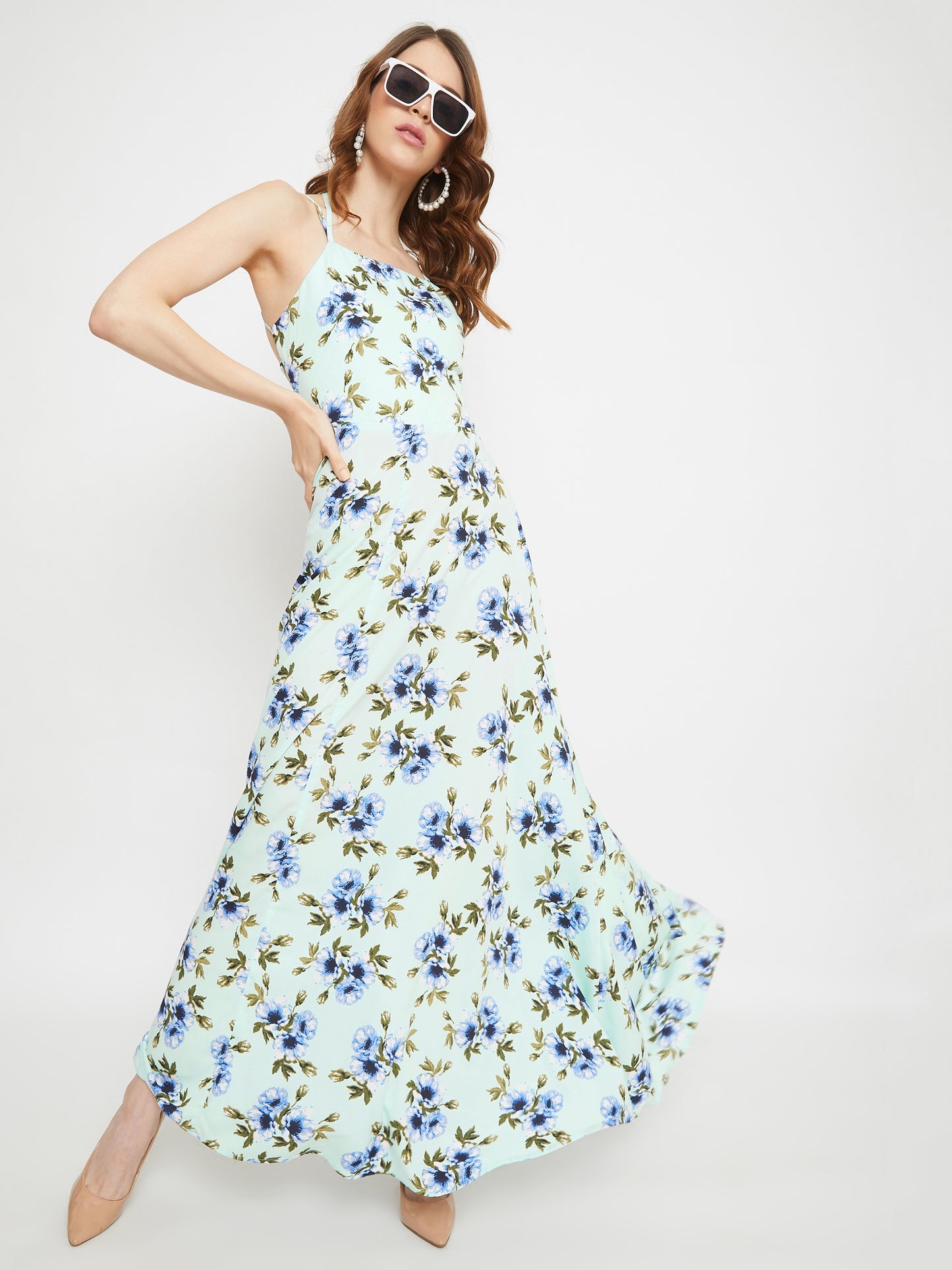 Make his heart flutter in this lovely Green Floral Maxi Dress by Berrylush. The criss-cross tie-up details at the back with shoulder straps create a captivating appeal while the long flared hem of this maxi dress gives you a graceful look. The all-over floral print on the dress makes it a trendy choice for the summer and the spring. The squared neckline of this dress offers you an attractive look to make you a complete slayer. This chic floral dress is stitched with crepe fabric. Style this sleeveless maxi dress with your favorite heels to get ready for the special evening.