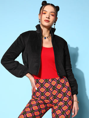 Searching for the perfect go-to layer that keeps you stylish and cosy this winter season, then the most suitable option for you is this charming Solid Black Stand Collar Tailored Regular Jacket designed by Berrylush. Styled with a stand collar neckline that offers a high-neck finish while keeping your neck warm for a prolonged duration. Featuring long-regular sleeves that give your arms maximum comfort and protection from cold winds. The zip closure makes this jacket easy to pull on and off without taking much time along with a clean sheen. Step out of your house looking fashion-focused by wearing this jacket over a white crop, high-waist jeans, ankle-length boots, diamond earrings, and a waist bag.