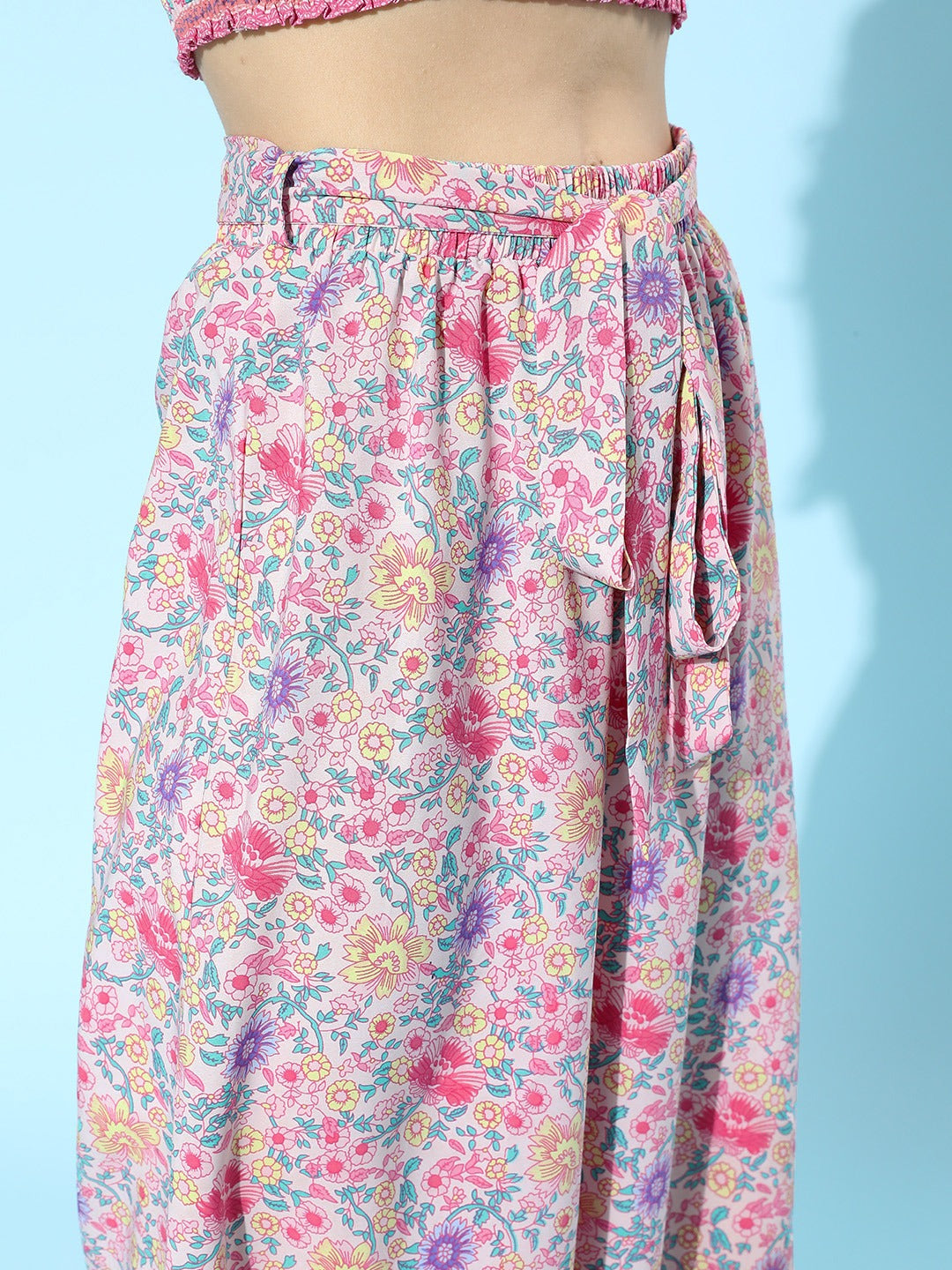Berrylush Women Pink Floral Printed Square Neck Cami Top & Wide-Leg Trousers Set