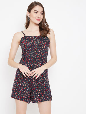 • Navy blue color with red floral print gives a radiant vibe to this playsuit