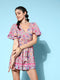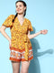 Berrylush Women Green & Brown Floral Printed V-Neck Flutter Sleeve Waist Tie-Up Pleated Mini Playsuit