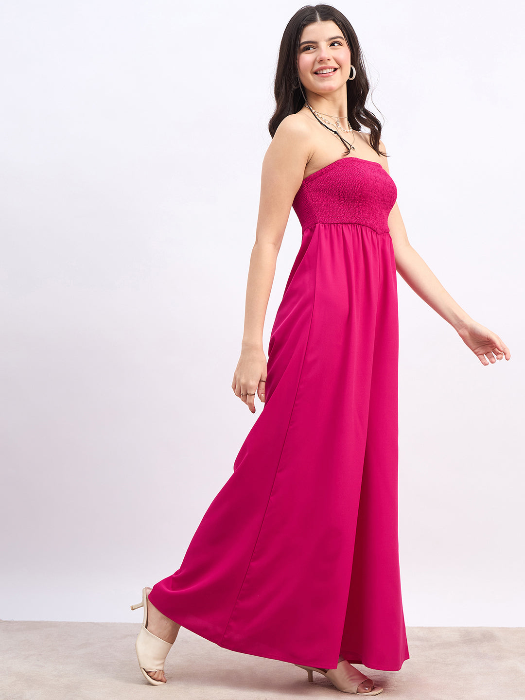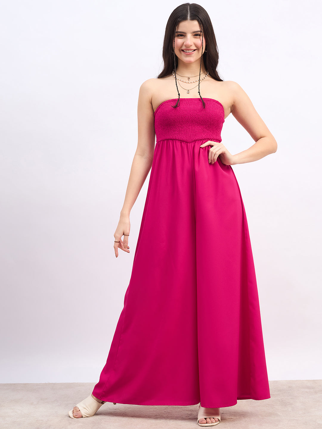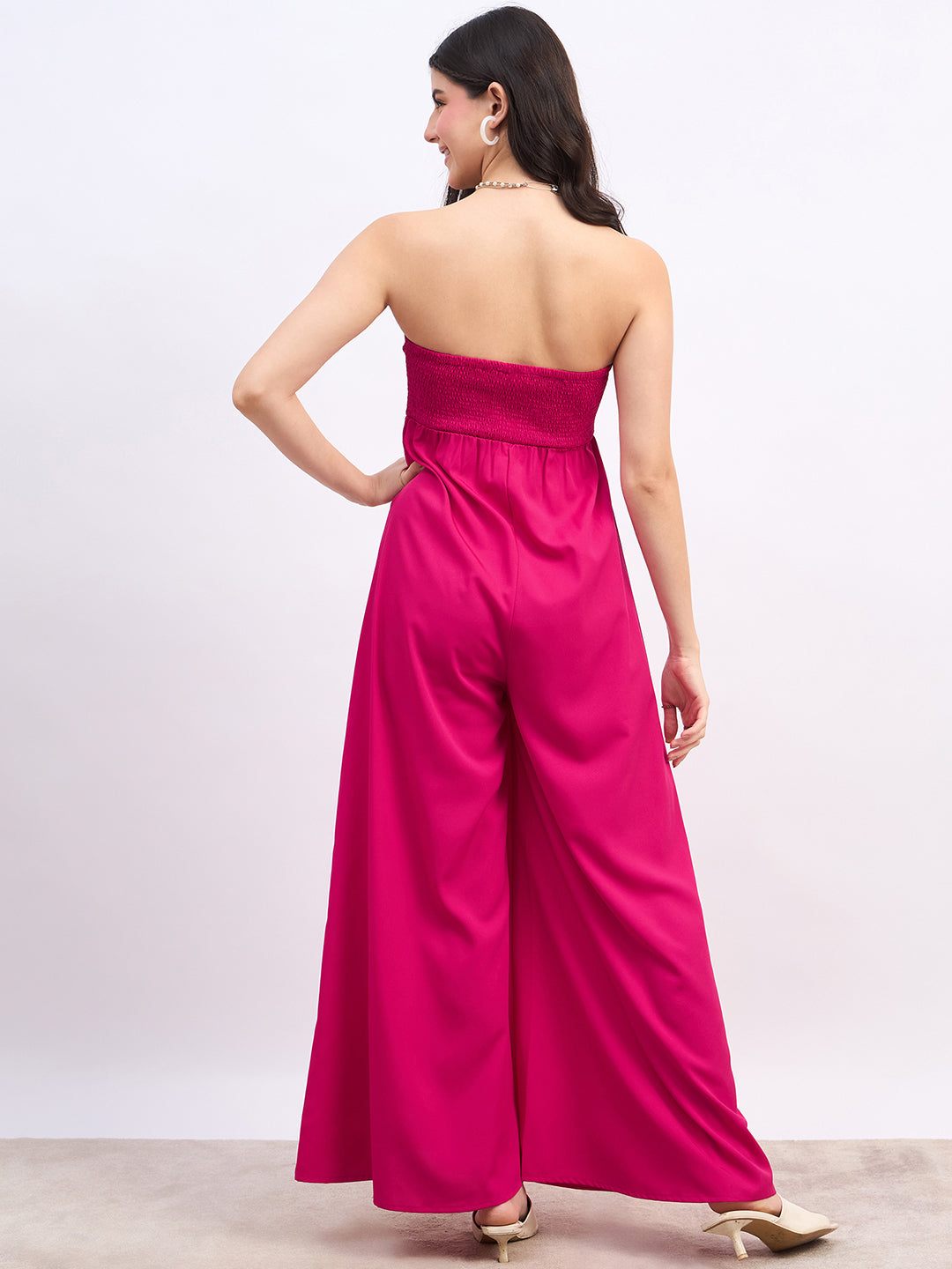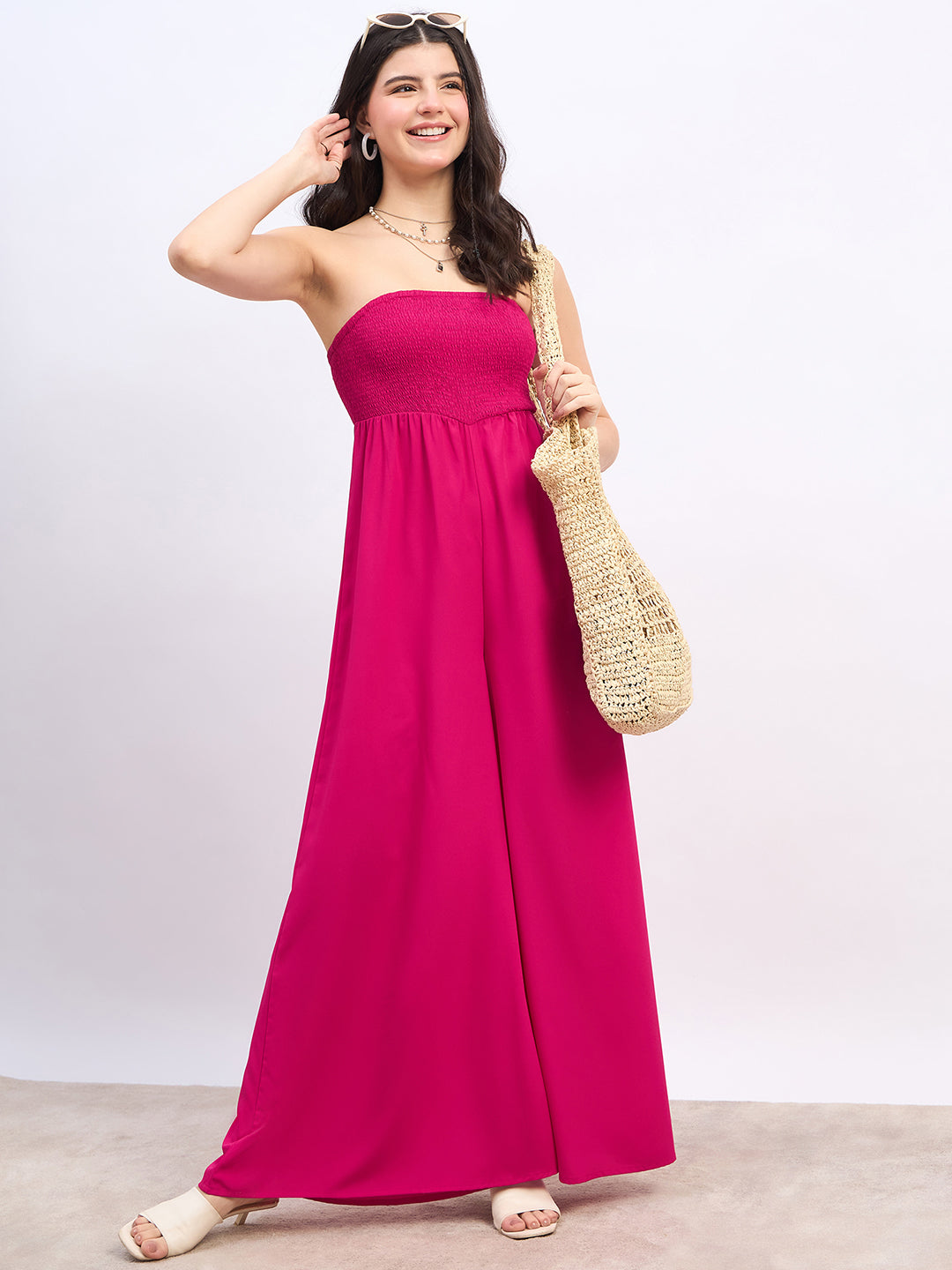 Berrylush Women Pink Solid Strapless Wide Leg Basic Jumpsuit