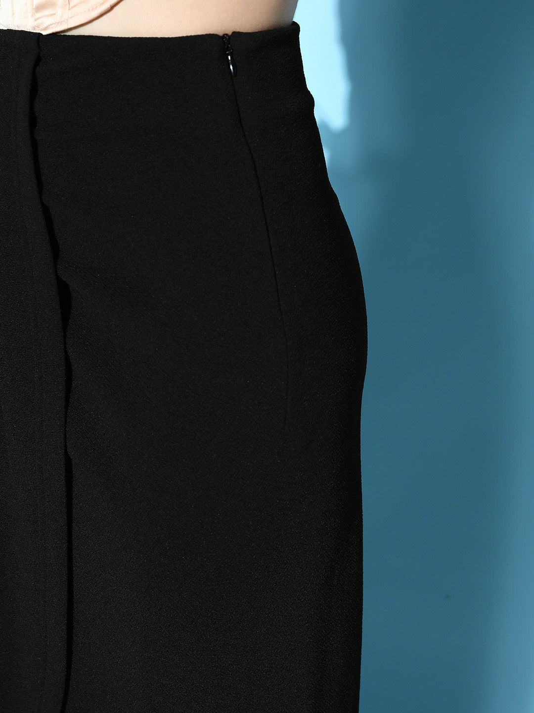 - Black shade with a solid pattern gives this skirt a posh and opulent look
