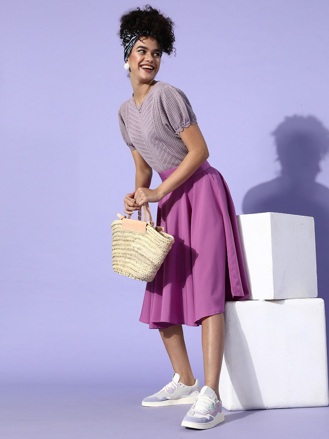 Berrylush Women Solid Light Purple Flared A-line Midi Skirt