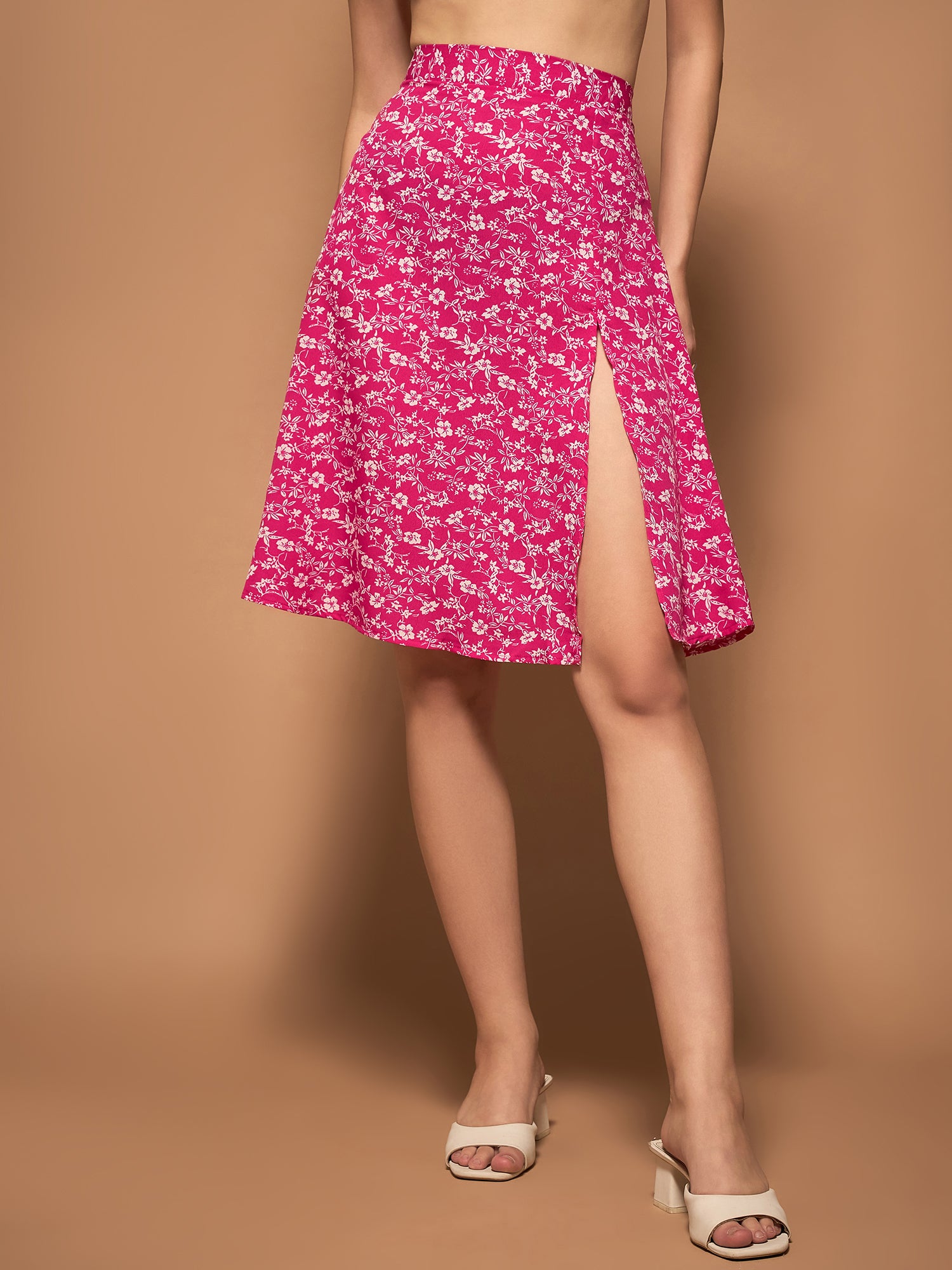 Bring a burst of vibrancy to your wardrobe with Berrylush's Pink & White Floral Printed Midi Skirt. Tailored from premium polyester, this high-rise pencil skirt boasts a chic woven texture and an opaque finish, ensuring both comfort and style. The eye-catching floral print adds a touch of nature-inspired charm, while the thigh-high slit introduces an edge of allure. Fitted with a smooth zipper closure for easy wear, the flared hemline gracefully accentuates your movements making it perfect for any casual occasion. Elevate your fashion game subtly yet stylishly with this beautiful floral piece.