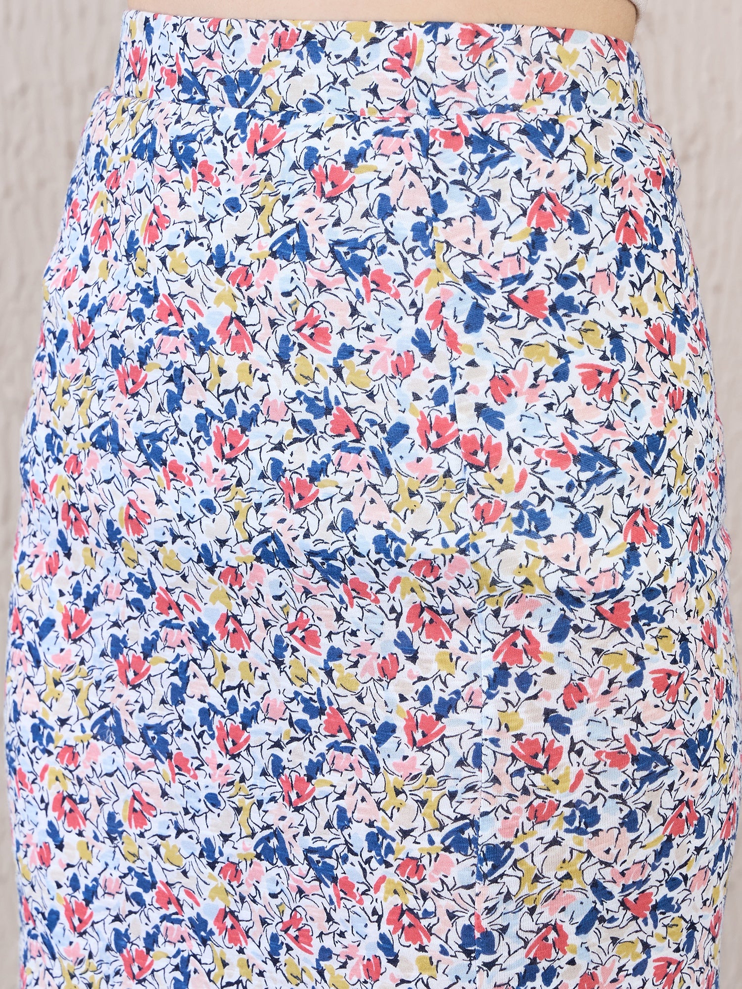 Step out in style with the Berrylush White & Multicolour Floral Printed Maxi Skirt, where elegance meets comfort. Crafted from pure cotton, this skirt offers breathability and a soft touch, perfect for any casual occasion. Featuring a vibrant floral print on a crisp white background, it exudes freshness and charm. The high-rise waist highlights your silhouette while the thigh-high slit adds a hint of allure to this sophisticated pencil skirt design. Its knitted fabric moves gracefully with you, making it an ideal choice for day-long wear. Completed by its easy slip-on closure and opaque finish; experience chic convenience blended beautifully with playful sophistication.