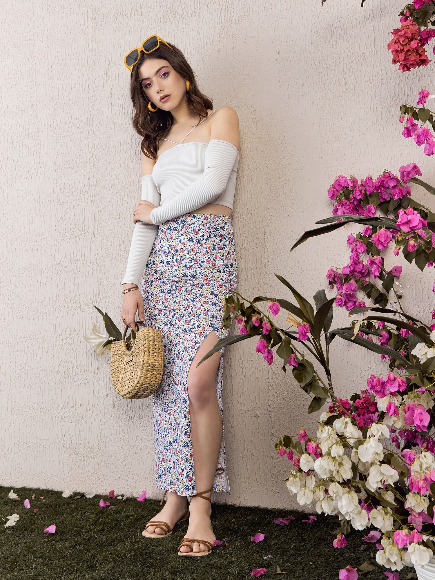 - White and multicolour floral print gives a charming look with a voguish touch