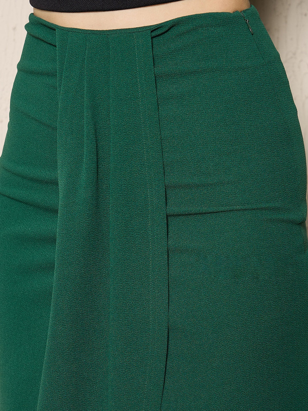 Berrylush Women Solid Green High-Rise Waist Slip-On Tulip Hem Front Thigh-High Slit Pleated Midi Skirt