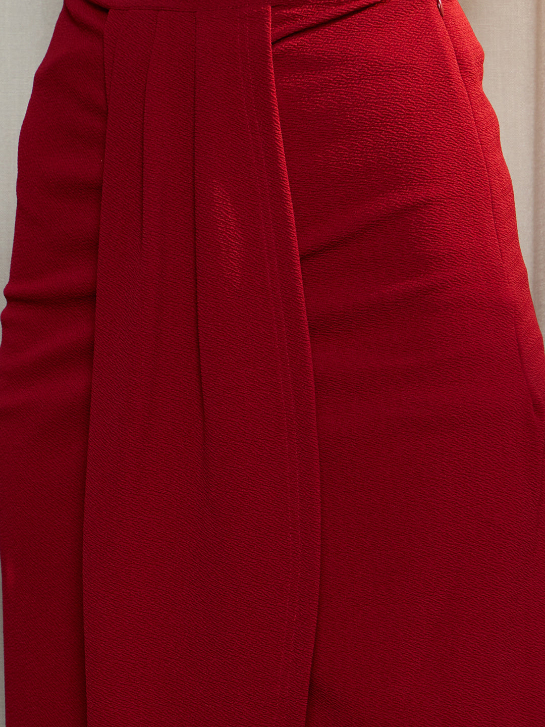 Introducing the Berrylush Solid Red Midi Skirt—a stylish blend of sophistication and comfort tailored for your casual wear collection. Crafted from a smooth, knitted polyester fabric, this skirt features a flattering high-rise waist and an effortlessly chic slip-on design. Its opaque finish is complemented by intricate pleats that cascade down to a charming tulip hemline, highlighted with a bold thigh-high slit for an added touch of allure. Presented in vibrant red, this piece promises versatility combined with unique flair that's perfect to elevate any outfit—whether it’s for daytime outings or relaxed evenings out.