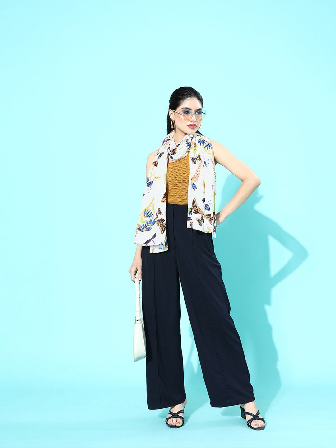 If you are looking to add some cinematic texture to your corporate outfit, then this charming White Botanical Printed Stole from Berrylush is the best option for you. The botanical print on the white colour of the stole adds fascinated nature visual to your workday outfit. The viscose rayon fabric offers lightweight and sweat-absorbing properties which makes it suitable for long warm days. This stole consists of 1.95 m in length and 52.07 cm width gets you an appropriate size to pull on a stylish and classic look while going to your office. You can pair this beautiful while stole with formal attire to get a sophisticated look or with your casual outfit to get a cosy look.