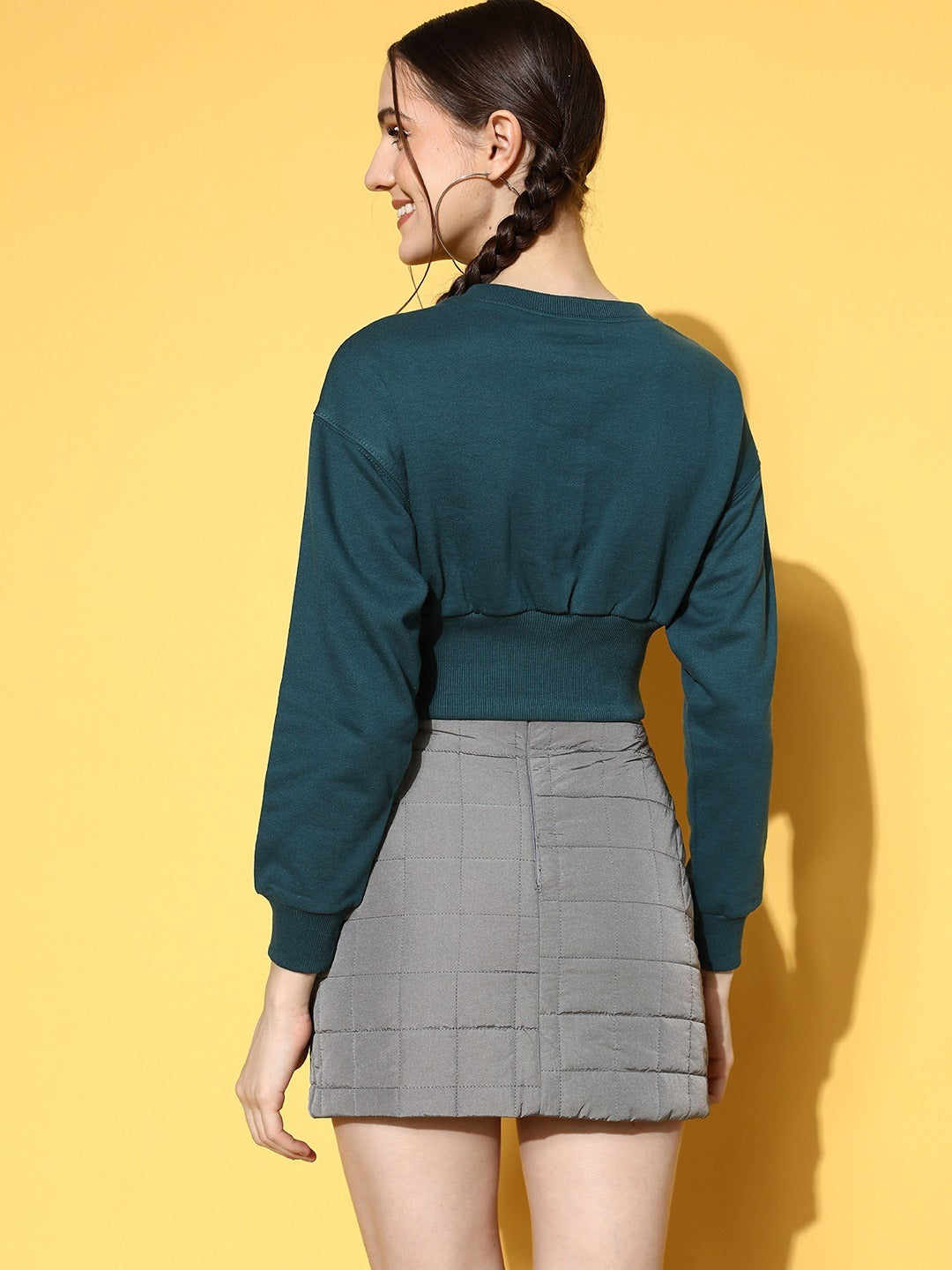 Be a style changer this autumn season by keeping it simple, elegant, and warm but with a dash of drop-dead glam by investing in this classy Blue Solid Crop Sweatshirt from Berrylush. Presenting a mesmerizing combination of blue shade and solid pattern that lends this sweatshirt versatile and chic fashion essence along with a cinematic vibe. Designed in crop length that makes this sweatshirt is a statement piece for every casual event while keeping your style upgraded with the latest trend. Also, the long-regular sleeves assemble a practical design of this sweatshirt that keeps your arms warm. Wear this cropped sweatshirt over a cute mini skirt, a pair of black knee-length boots, hoop earrings, and a matching side bag to create a bedazzling look.
