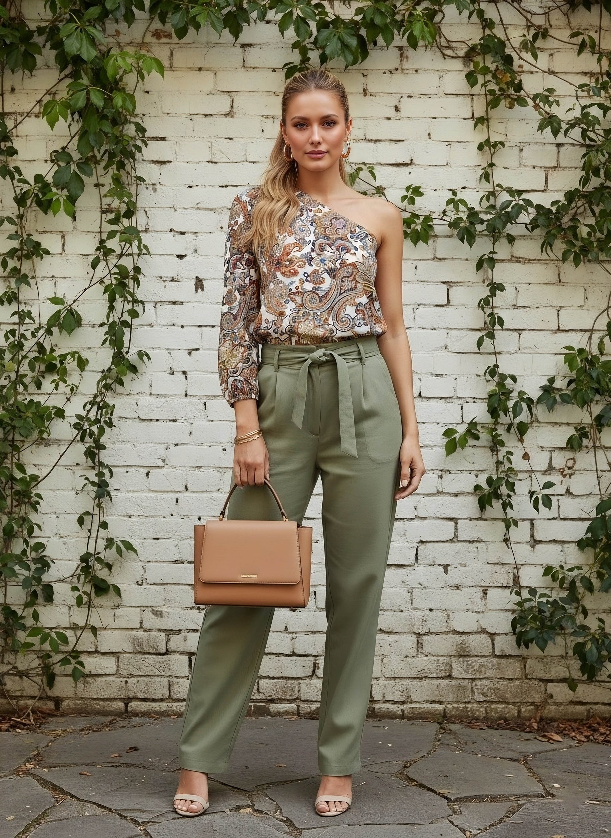 - One-shoulder design that gives your neckline an asymmetric and enticing outline